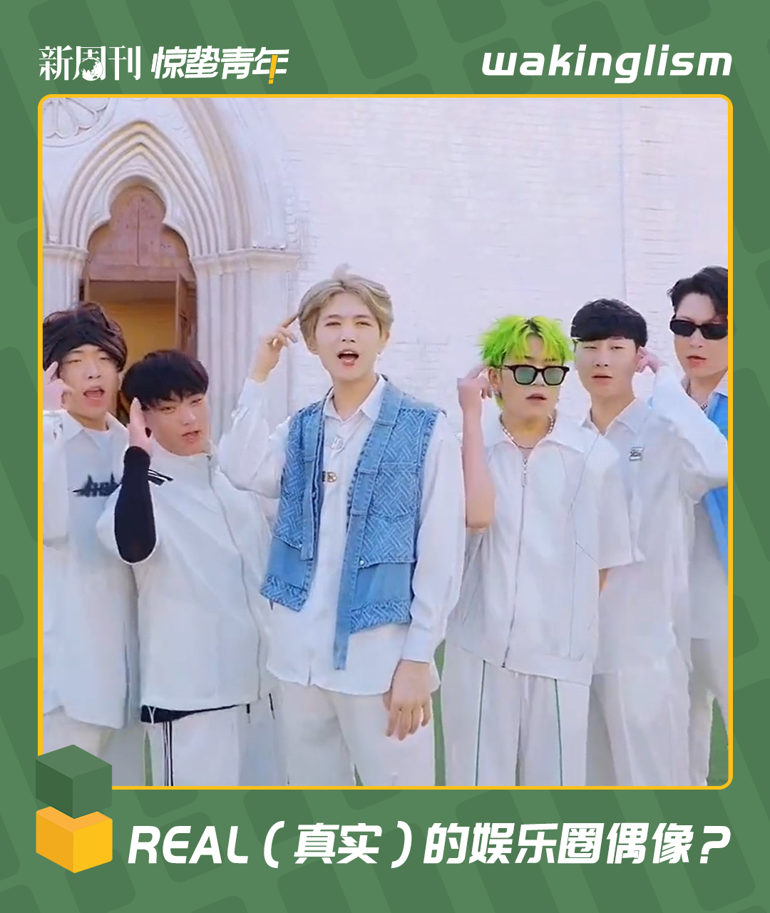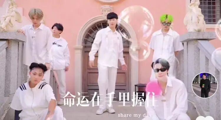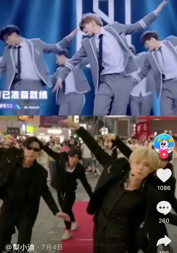 黄子诚,比其他成员矮整整一个头,垫着脚也要保持气场。/短视频截图