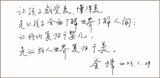 李力加:当下及未来,面对未来人工智能的挑战,儿童的眼睛究竟看到的是什么呢?以美育人、以文化人、以美培元的儿童艺术教育,需要强化对儿童视觉感知习惯、视觉观看价值判断力的培养。“学会感受”,是实施难度最大的艺术文化教育。培养儿童的视觉感受力,构建儿童视觉文化价值观,是实现面向人人美育目标的本质要求。儿童具备何种视觉感受力,决定了其在感受生活世界的时候,能够看到什么,看不到什么;眼睛(思维)特别关注什么、又会自然忽视哪些?以美培元的润泽,体现在儿童把握视觉符号语言系统时,所呈现出的特点和程度水平,这是难以综合评价的儿童内在审美素养。作为未来公民,儿童面对千变万化的视觉传达信息化世界,自己生活周围“视觉图像环境”究竟是怎样的?儿童个体视觉感受、认知、体验、理解、想象、联想、决定、行动关系与方向,与基础教育阶段艺术课程美术课学习中,所给予儿童的视觉符号语言系统把握水平密切相关。