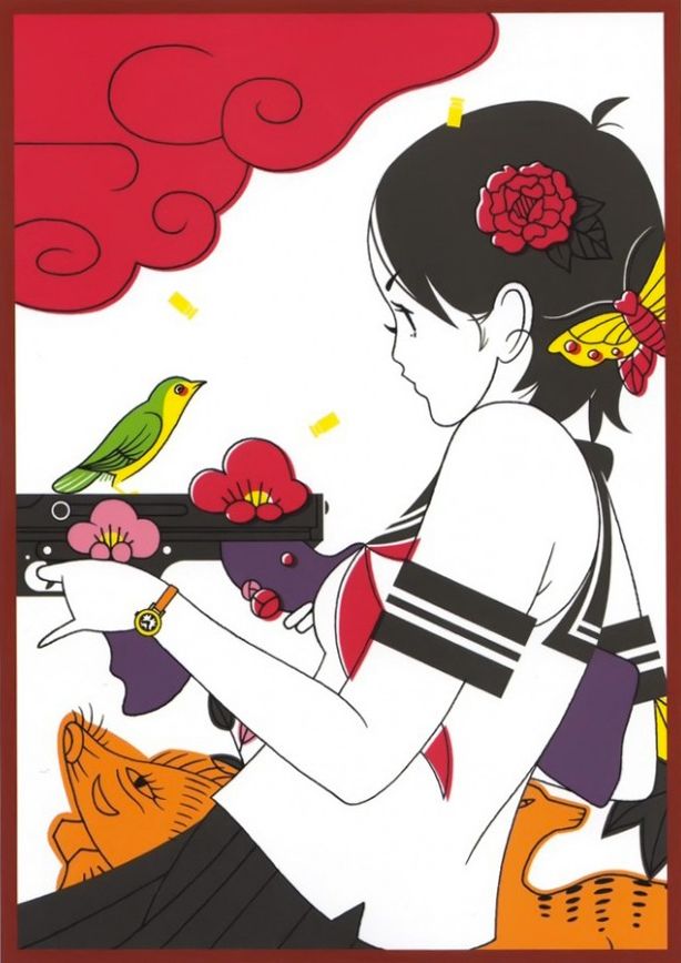 最新文章2023-04-04 少了他,日本最颠覆的动画电影里就没有这些美少女!| 金城 随着日本萌系文化和互联网的普及,动漫产业逐渐出圈。也让依托动画、漫画、轻小说成长起来的艺术家有机会走向大众。 大火的《春宵苦短,少女前进吧!》,除了惊叹汤浅政明这个鬼才导演异想天开的才华之外,还将插画家、原画师中村佑介带到了我们眼前。 中村佑介是当代日本最活跃的插画家、音乐家及漫画家,而他最被人熟知的身份,还是插画家。 因为他屡次和汤浅政明这样优秀的导演合作,也因为他的作品独一无二,识别度极高。 比如,一想到《春宵苦短,少女前进吧!》,观众第一时间在脑海中想起的大概就是中村佑介笔下少女那似笑非笑的侧颜。 兼之极具动态性的身姿,总让人觉得她们即将跑起来,跑着跑着又即将飞起来。 而他能参与知名电影的创作,离不开他插画的成功。他的作品总是新潮与怀旧并存,色彩艳丽,让人不自觉就想起昭和时代。 哪怕单幅插画,也将中村一贯的幻想风格发挥得淋漓尽致,可以挖掘其中层出不穷的意象与脑洞,有着无限趣味。 比如这幅画,穿着学生服的少女,在大人认知中,课桌应是她的全部天地,但悸动的少女心可不会讲那么多大道理。她在幻想与现实之间小心翼翼寻找着平衡点,就像在走钢索。 她幻想着鸟儿叼起围巾,带她飞出地球,冲到自由自在的宇宙,她幻想着教室的窗外樱花盛开,青春就该美好放肆。 她背起一颗大大的轻盈的心,但上面却挂着一个保护符,焉知保护过了头,就不会成为束缚? 又或者这一幅为唱片所作的封面,娴静的少女云淡风轻弹着琴弦,而充满和风味的房间装着装不下的海龟。这种绝佳的融合,正是他对音乐的理解,现实与幻想并存。 他笔下的少女,凭着飞扬的姿态,懵懂的神情而虏获观者的心。 因为少女最珍贵的,就是这种看起来很严肃、也很疯狂,肆意又无畏地前进的脚步。 所以,中村佑介的少女永远那么打动人心,让人念念不忘。正如他自己说的“我喜欢的女性已经画在画里了!” 千变万化的少女们,都在他笔下获得恒久的生命力,成为观者记忆宫殿的一角。 正是这种影响力,让中村佑介的插画道路越走越顺,为堪比《新华字典》的一代经典,被称为“汉和辞典的巅峰”的《角川·新字源》、日本高中音乐教科书绘制封面。 被流行文化认可是一方面,重要的是他的作品常常有青少年阳光向上的能量流出,所以才能获此殊荣,一跃成为国民级插画家。 但是将他推上台前,仍然离不开汤浅政明和森见登美彦,前文提到的动画,皆是由森见的小说改编而来。 一经推出便不负众望,《春宵苦短,少女前进吧!》夺得日本电影学院奖最佳动画片、渥太华国际动画电影节长篇部门最高奖。 《四叠半神话大系》也在国内豆瓣上高达9.1分,无数观众都沉浸在奇幻瑰丽的少女物语中。 而中村佑介与森见的合作,早在2006年就开始了,被称为森见小说视觉化的第一人,之后担任动画角色设计的岗位,继续为森见优秀的作品注入灵魂。 古老的鸭川、祇园祭,碰撞上奇幻风味,再掺上少女与少年间永恒的恋爱与哀愁,与作者装饰性极强又活力十足的插画天然相合。 青春期少年对异性的神秘与想象,都融入中村笔下少男少女彷徨又坚定的眼神中。 汤浅恣意疯狂的意识流风格,与中村似是而非的画风、森见对青春放飞想象的描绘绝配。中村与森见本就是互相成就,而汤浅政明的加入,则为三人的成功投入了十分重磅的能量。 尽管最关键的是导演,但汤浅政明却说,中村是他有所成就的基石:“他真的很聪明,完全是一个妖怪!他的思考时间很长,但一旦开始工作,就能迅速地完成任务。他作品的构图设计都很前卫,特别是对当代少女的观察别具一格,我的创作有很多他的痕迹。” 除了小说封面,中村佑介也为杂志、唱片进行封面设计。他总是将自己对作品的理解融入设计之中,具有故事性和情节性,并且不失鲜明的个人特色。 比如下面这幅为小说《推理要在晚餐后》创作的封面,就契合了“无论是多么悲惨的杀人事件,也要优雅地解开谜团”的小说简介,更是将女主角一面是菜鸟刑警,一面是财团千金的形象完美融合。 中村设计的封面为小说增色不少,作品畅销140万册,还被改编为电视剧。 而在自由创作时,他又完全掌握着自己的奇想宇宙,观者就像乘坐一趟列车,进入他的画中世界游览,热爱的,就留下成为中村宇宙的居民。 插画家小田岛等评价说:“这样的箱庭世界,现在也引发少年少女们的共鸣,令他们想要进入其中。这份渴求就是通行证,我们得以瞬间成为中村佑介世界的居民。” 事实上,许多读者几乎是一瞬间就拥有了这个通行证。音乐人桥本小百合则说:“倘若你已经看到他的画册,那彻底沦陷就是唯一结局。” 的确,中村佑介的插画新旧交叉,既有旧时代淡淡的文艺气息,又有当代艺术灵动的想象力,杂乱无章中掺杂着精致浪漫的碎片,幻想与现实并行,有一种超脱的异世界美感。 虽然是扁平作画风格,但其空间感却相当强,像虫洞般,不断超越时空秩序,让观者获得飞跃宇宙之感。 既有人间味,又有天外气。 “森见登美彦X中村佑介X汤浅政明”的天才组合,引领了当下文艺世代关于青春的神往与想象。 中村佑介的作品也总有一股诚惶诚恐的气息,恰似青春对未来的不确定,对成长的不确定。 然而,中村并不流连于这种气质之中,少女一举一动、一颦一簇