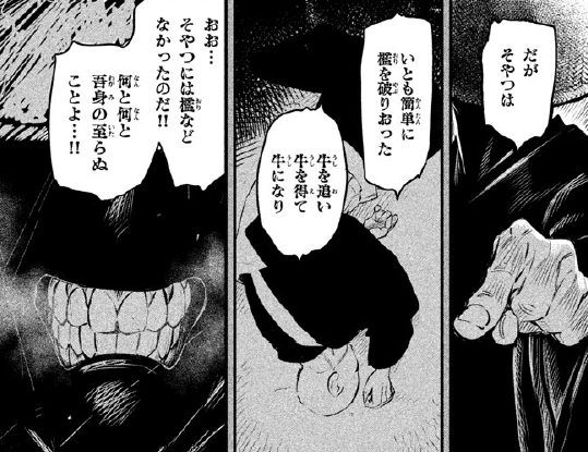 自己历经千辛万苦却始终没能离开囚禁自己的牢笼,可那家伙却非常简单地破坏了牢笼,轻而易举地逐牛、得牛、成牛,对那家伙而言,根本就没什么所谓的牢笼。这真是可恨啊,为什么他能轻易做到我做不到的事?
