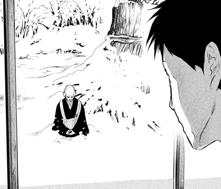 几人都很奇怪,这么冷的天,和尚干嘛在雪地里打坐,而且刚刚好像都没见着人,怎么悄无声息地就冒出一个和尚?院长想着这该不会就是今川约好要见的小坂吧?