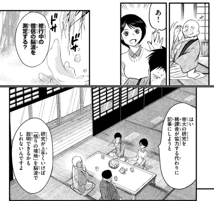 敦子其实先来探路和交涉的,最开始是东京大学提出了一项研究,想测定修行中僧侣的脑电波,那些大学教授想通过科学的力量解析佛教中的“明悟”境界。
