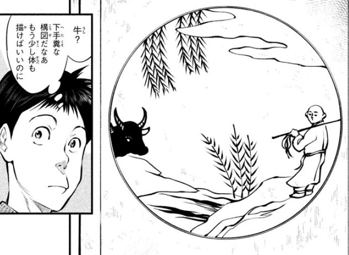 而反观他大哥却只知道憨直地模仿老爸的风格,今川觉得大哥的画太没有新意了,很无趣,然鹅,他的创新画法却被老爸给训斥了,老爸让他不要画得太巧妙,老爸认为莳绘不是艺术只是工艺品,他们一家只需要按部就班地画下去就好了。