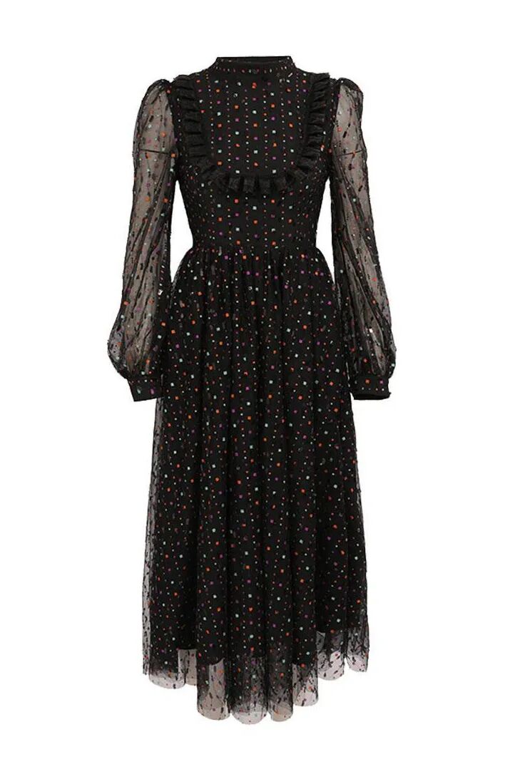 亮片刺绣有重工的华丽感,光泽上有喜剧色彩,想融入日常的款式要减小亮片的面积。