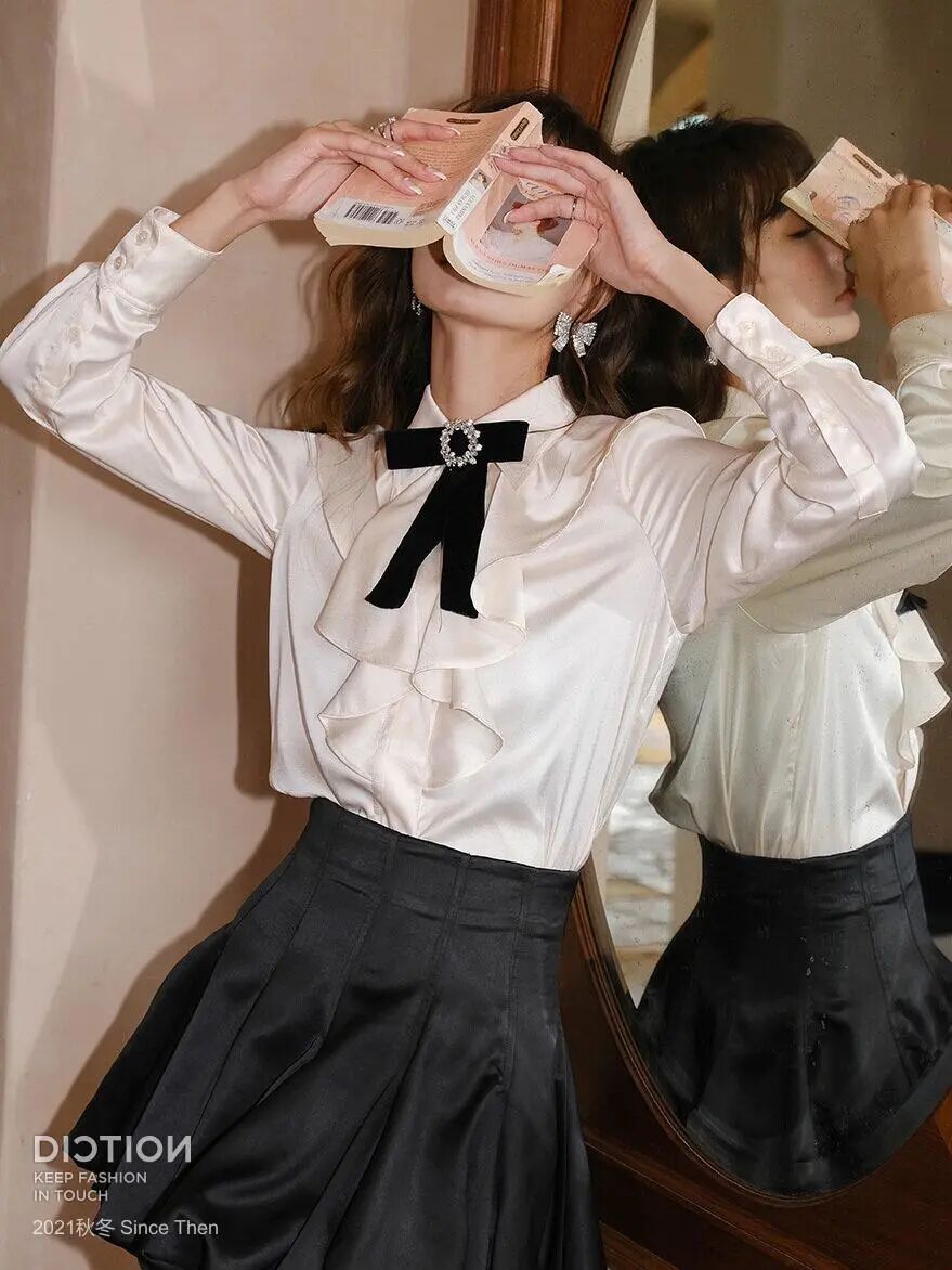 学院风的领结给服装带来如同魔法一般的减龄效果,总是使人联想到青春洋溢的美少女。