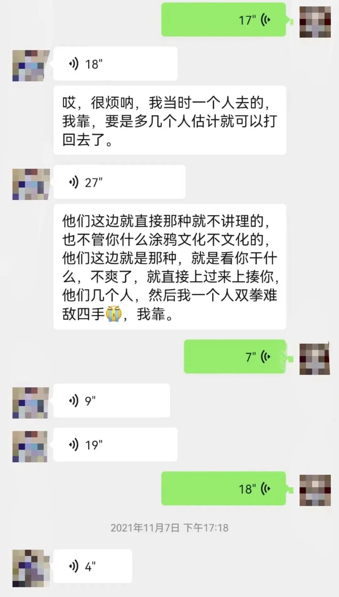 聊天里的主人公在英国留学,在街上画涂鸦的时候被几个老外围着进行了殴打,同时还抢走了他的书包,这波确实很惨啊。在国外这种事确实是常有的,他们不会注重你涂鸦干啥,也不会去报警啥的,而是直接就上手了。