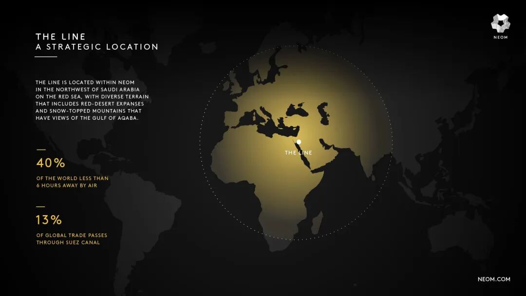 这座智慧城市位于沙特阿拉伯西北部塔布克省正在建设的目的地NEOM,仅宽200米,长170公里,海拔500米。建成之后将包括城镇、港口和企业区、研究中心、体育和娱乐场所以及旅游区,成为来自世界各地超过一百万居民的社区。预计到2030年,THE LINE将创造38万个新工作岗位,刺激经济多元化,并为国内GDP贡献1800亿沙特里亚尔(3241.62亿人民币)。