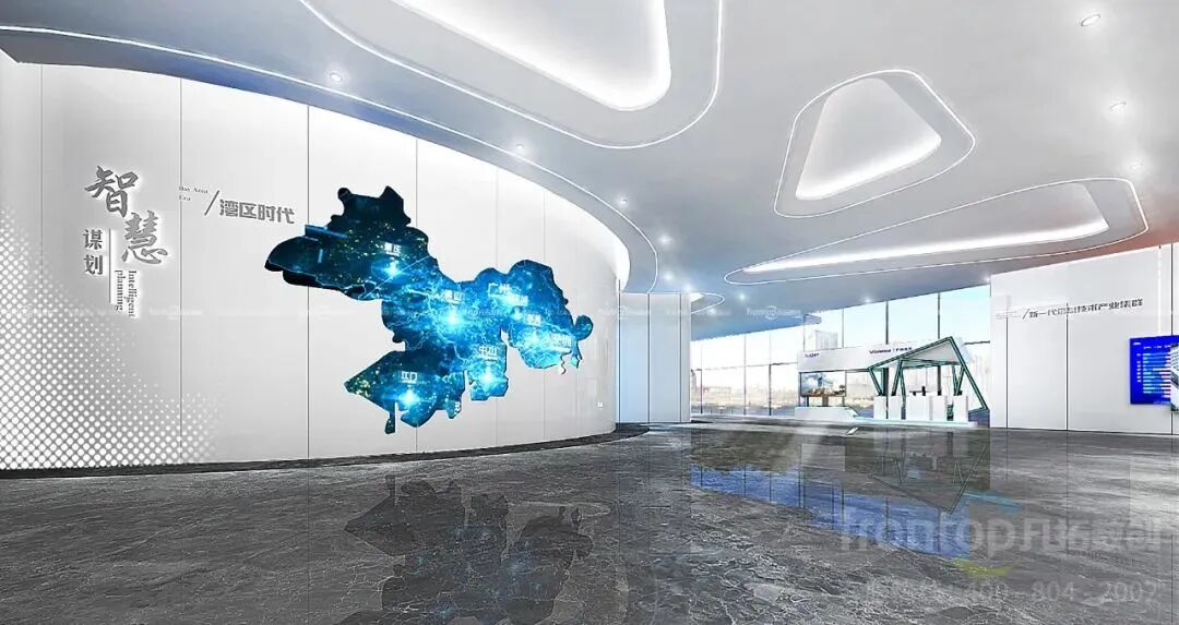 增城经济技术开发区展厅着眼湾区大局,以“动力源•擎动未来”为主题,以动力源的“开启-加速-聚集-创新-展望”为脉络,串联“序厅”“湾区高地”“智慧谋划”“产业赋能”“科技创新”“未来蓝图”六大板块,致力打造成为集规划展示、招商引资及商务会客于一体的国家级开发区招商展示标杆。