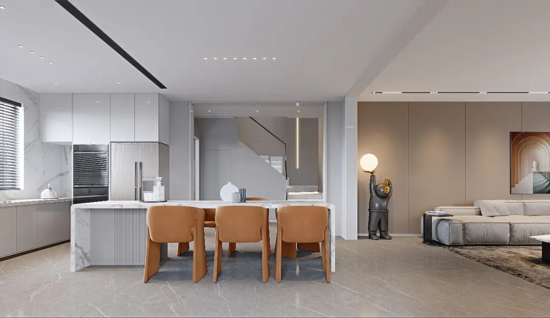 空间与空间的相互串联,动线间的相互融洽,在不同空间活动的家庭成员可以相互交谈、或者感知到彼此,让人感觉空间是流动的,而不是闭塞。在自由空间里,陪伴是最珍贵的时光。
