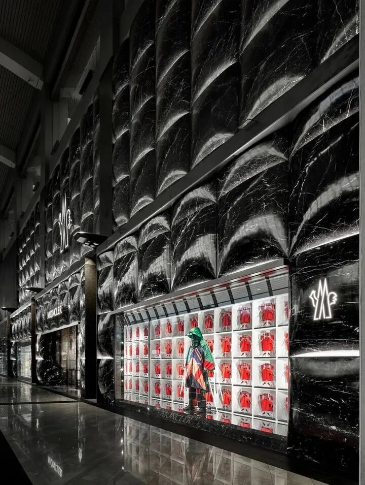 新开的Moncler旗舰店出现在滨海湾金沙内,建筑消失成为新加坡城市景观中一个简单、不可错过的标志。门面本身就体现了品牌的身份:模仿Moncler经典羽绒服的曲线和褶皱,与品牌世界的第一次邂逅就已经让人眼前一亮——日夜可见,门面在对比的空间里邀请游客体验难忘的体验。