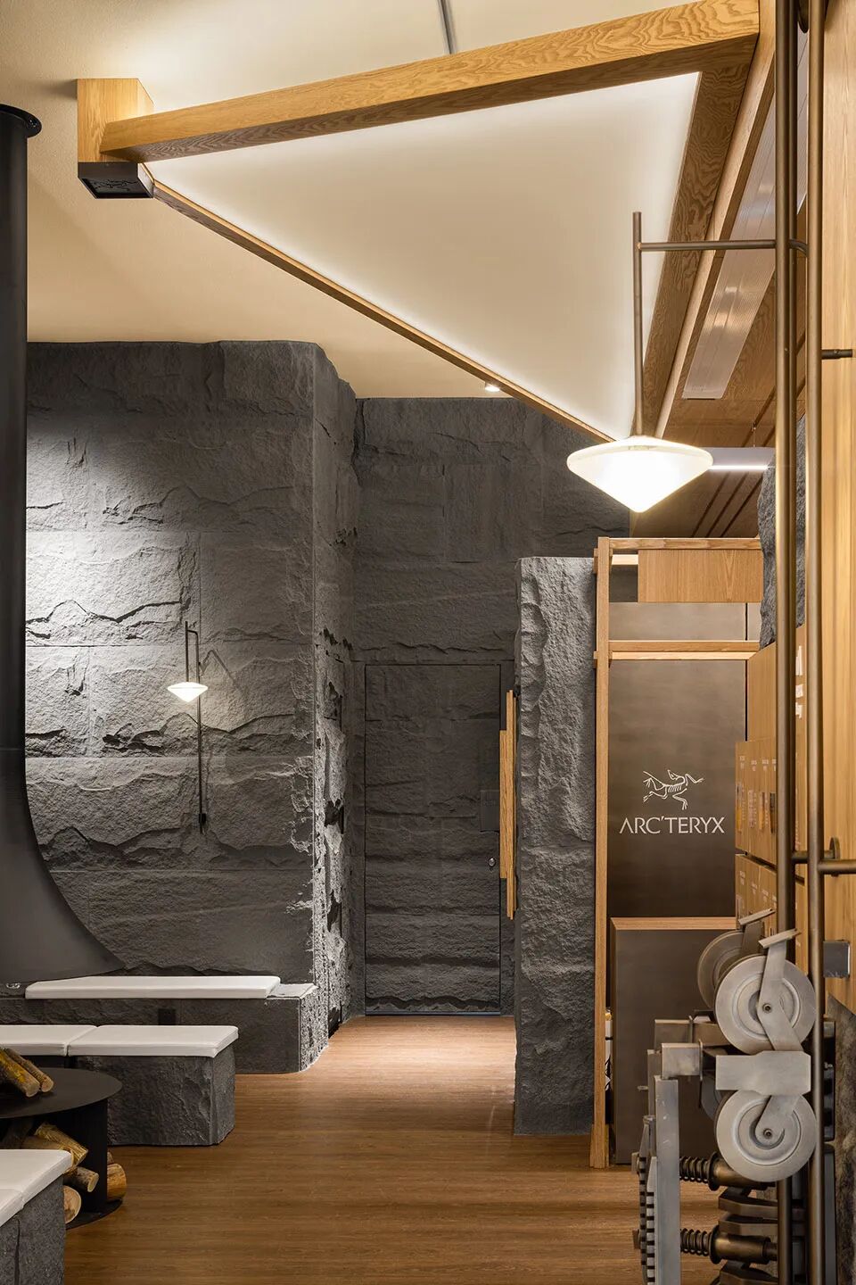 本案正是基于品牌基因,以暖色调的光影、肌理及多元层次的空间语言,一反以往商业设计的狭义程式,聚焦用户自空间内外的自然体验,强调功能契合及社群气质,为每位拓雪者,打造了一处满载归属意义的精神之所。
