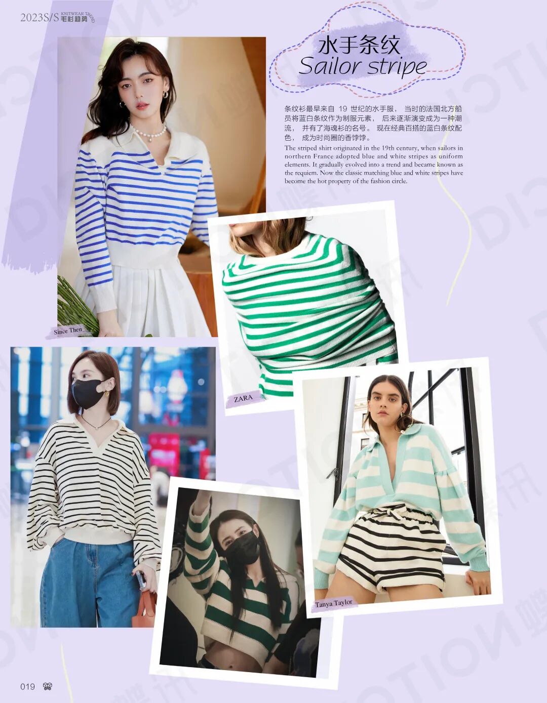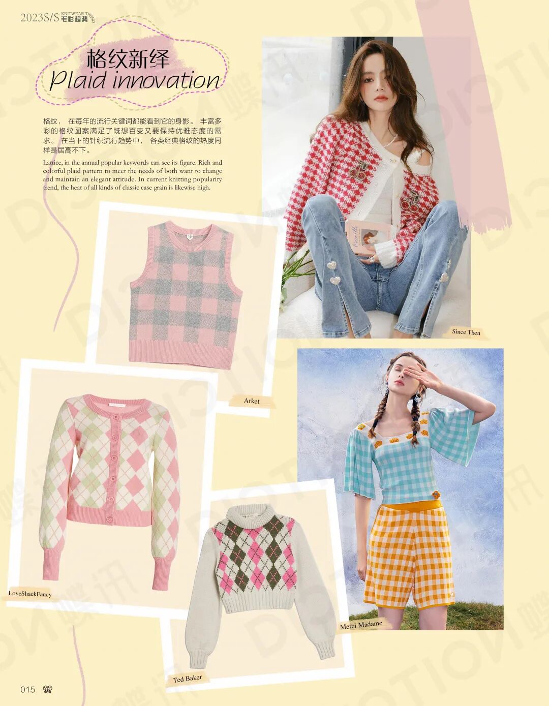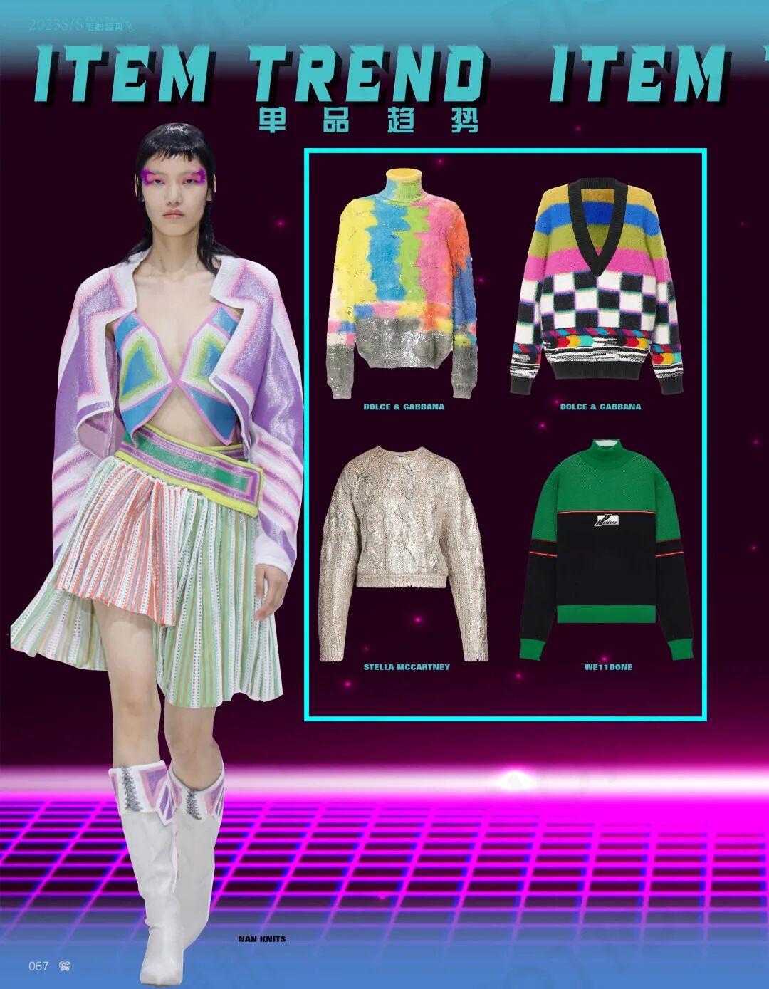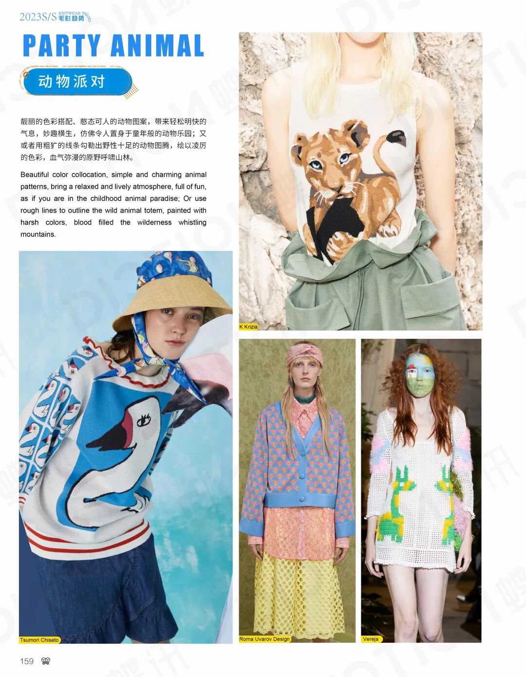 各品牌依旧在深耕怀旧的童年主题,也和很多图案艺术家展开了合作,鉴于欢乐风格表现依旧强势,可在设计中添加体现积极正能量的元素。通过玩趣图案针织和平纹针织单品,很好地彰显了积极向上的精神。通过提花和嵌花元素,为几何图案和图案针织设计增添趣味,加入动物,水果和花卉设计醒目的图案。