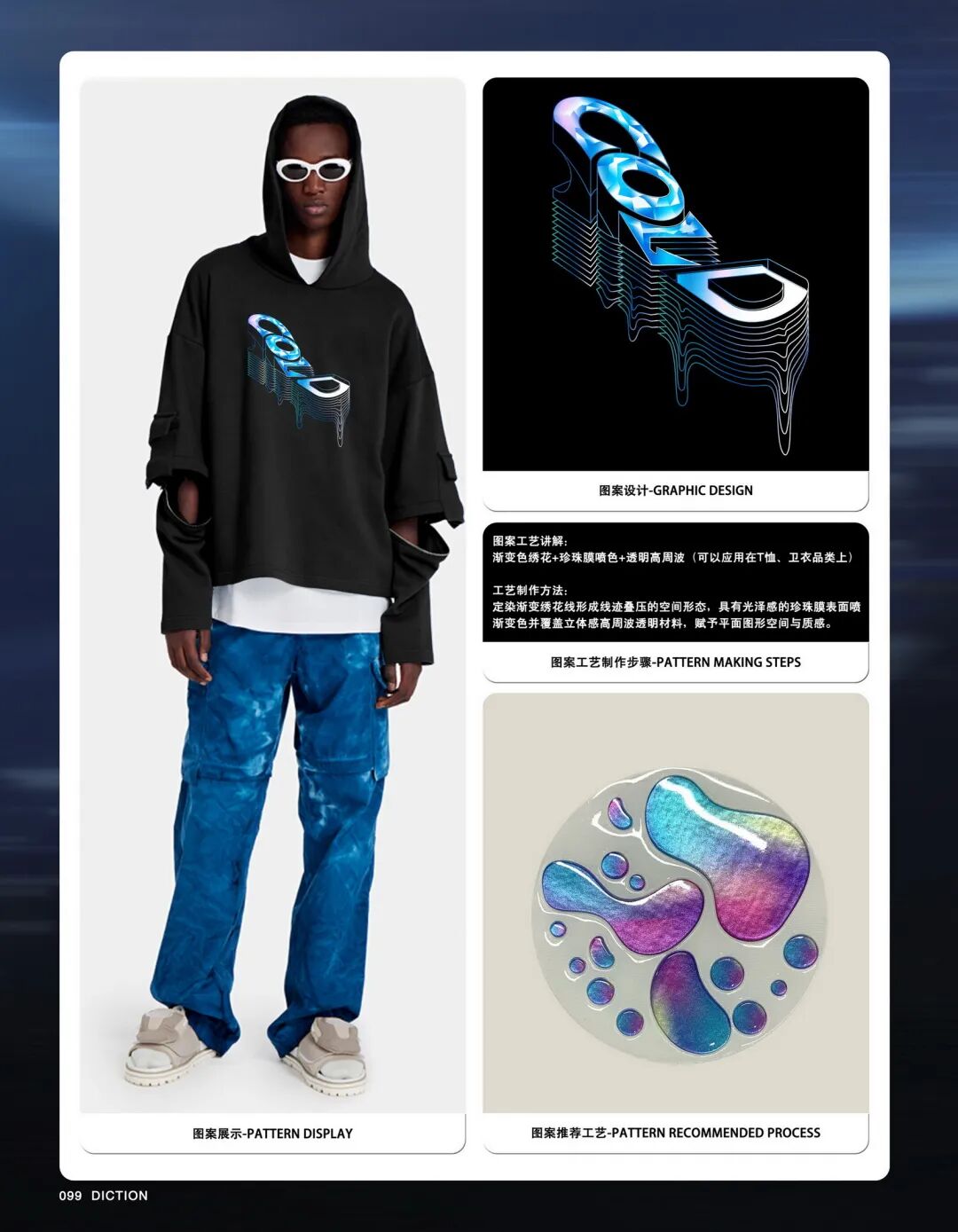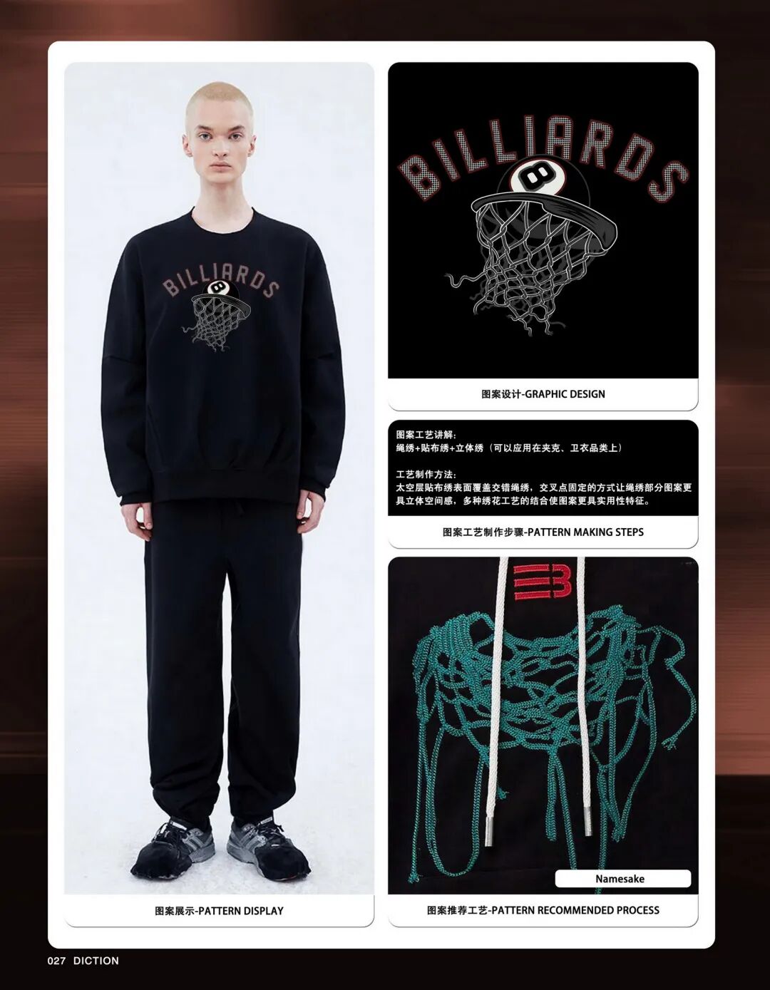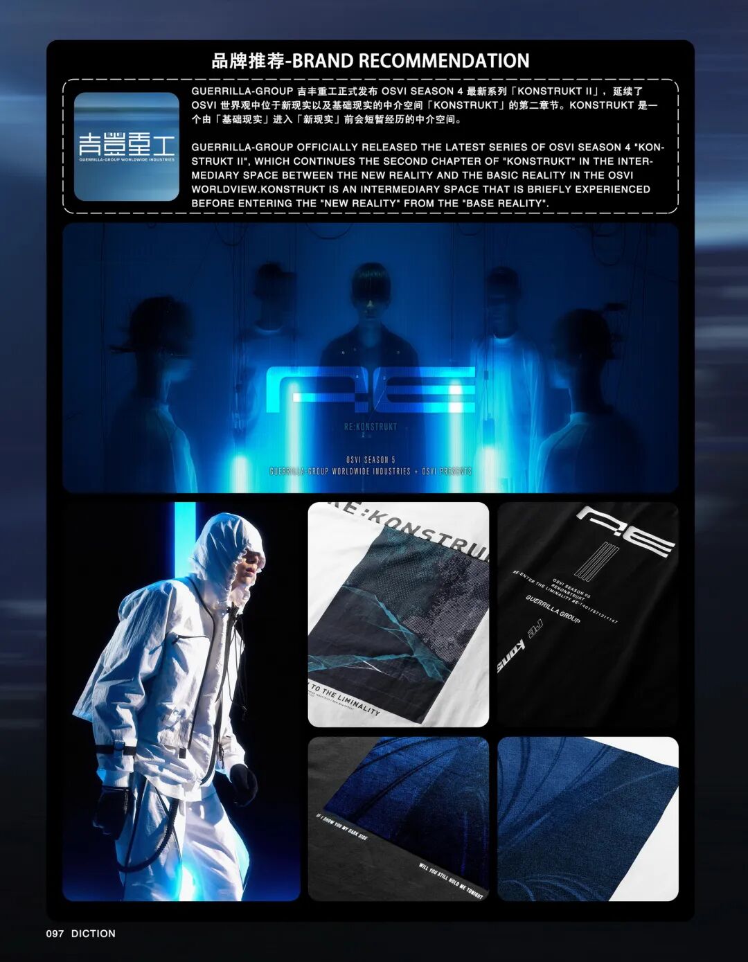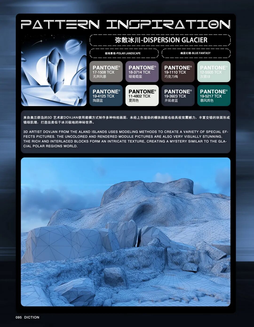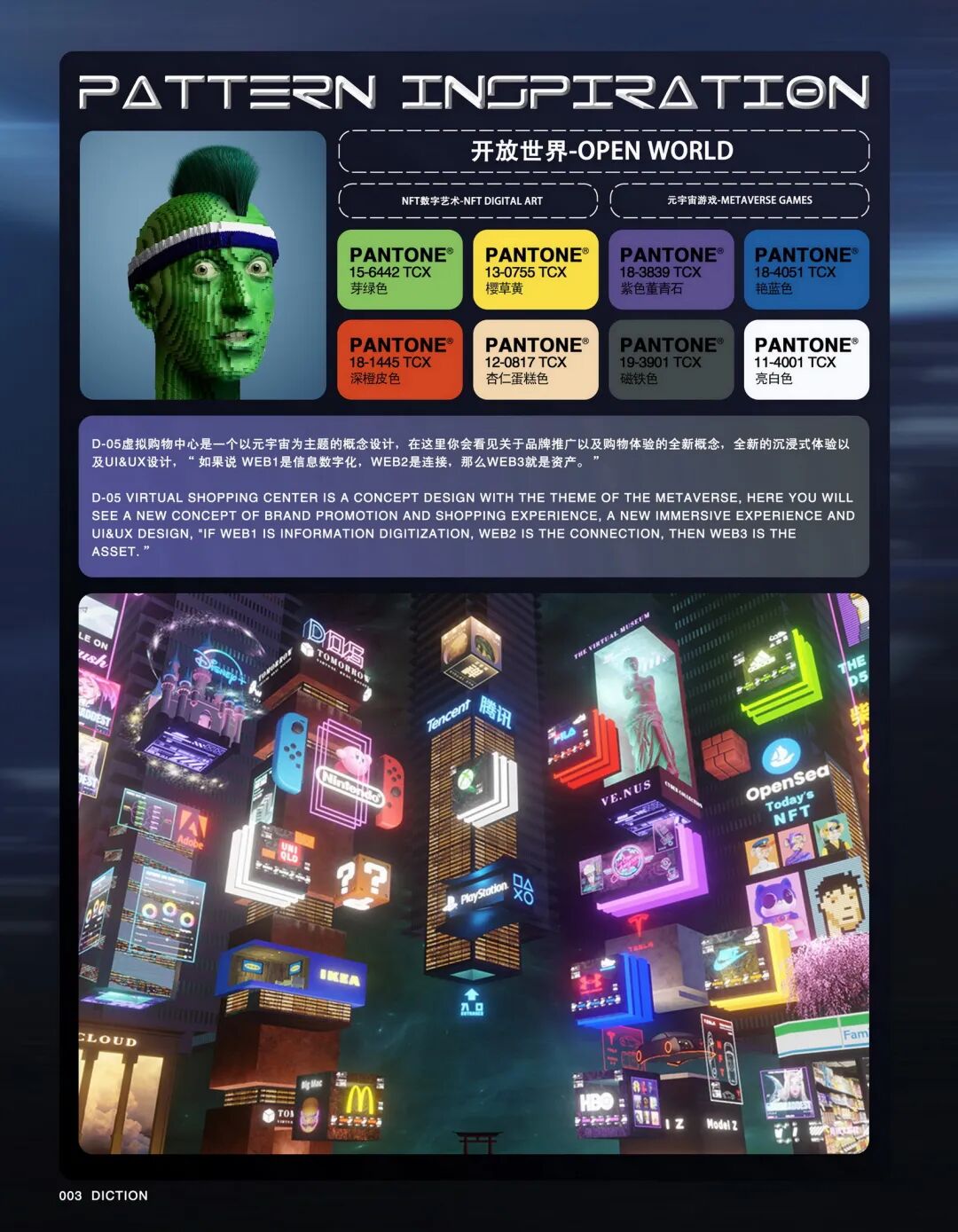 本书籍紧跟流行文化元素,提取了6个主要的创作方向,包括「开放世界、集结指令、数字空间、暗夜狂欢、自然联系、弥散冰川」等主题,详细解读男装2023/24秋冬图案趋势。