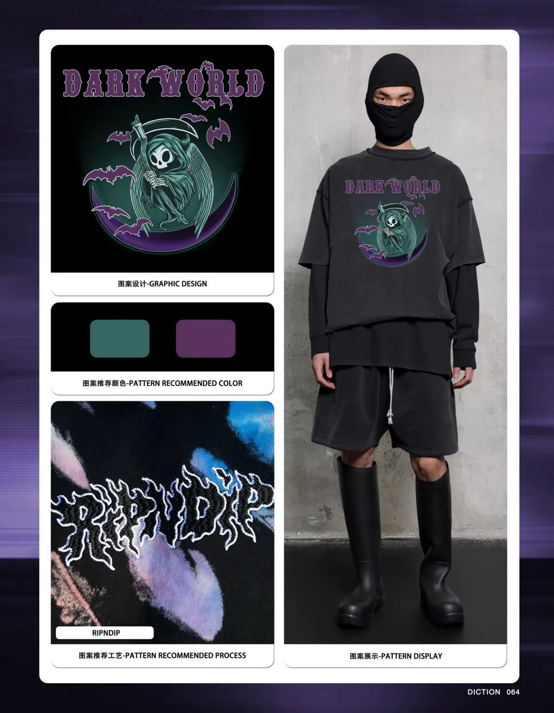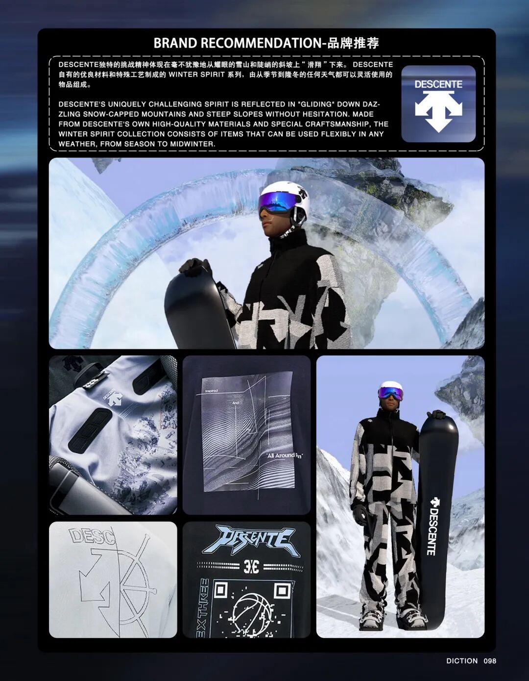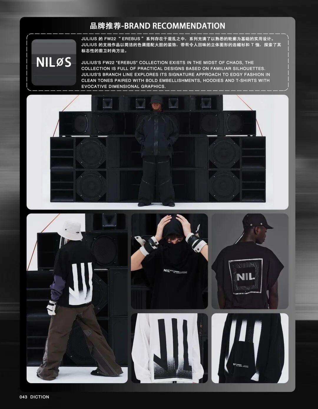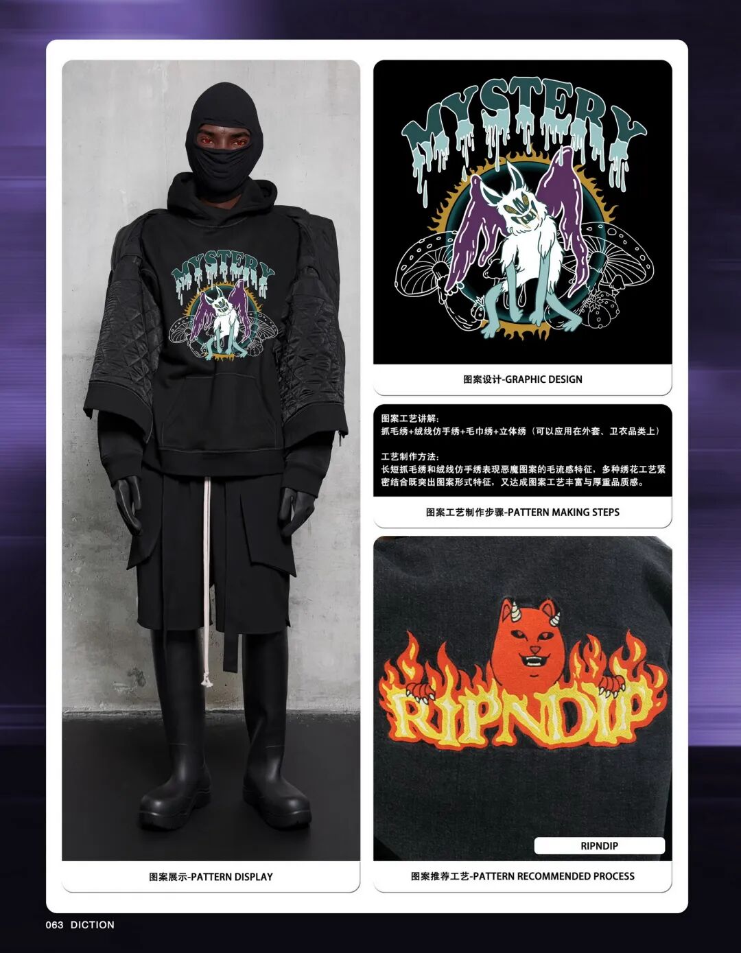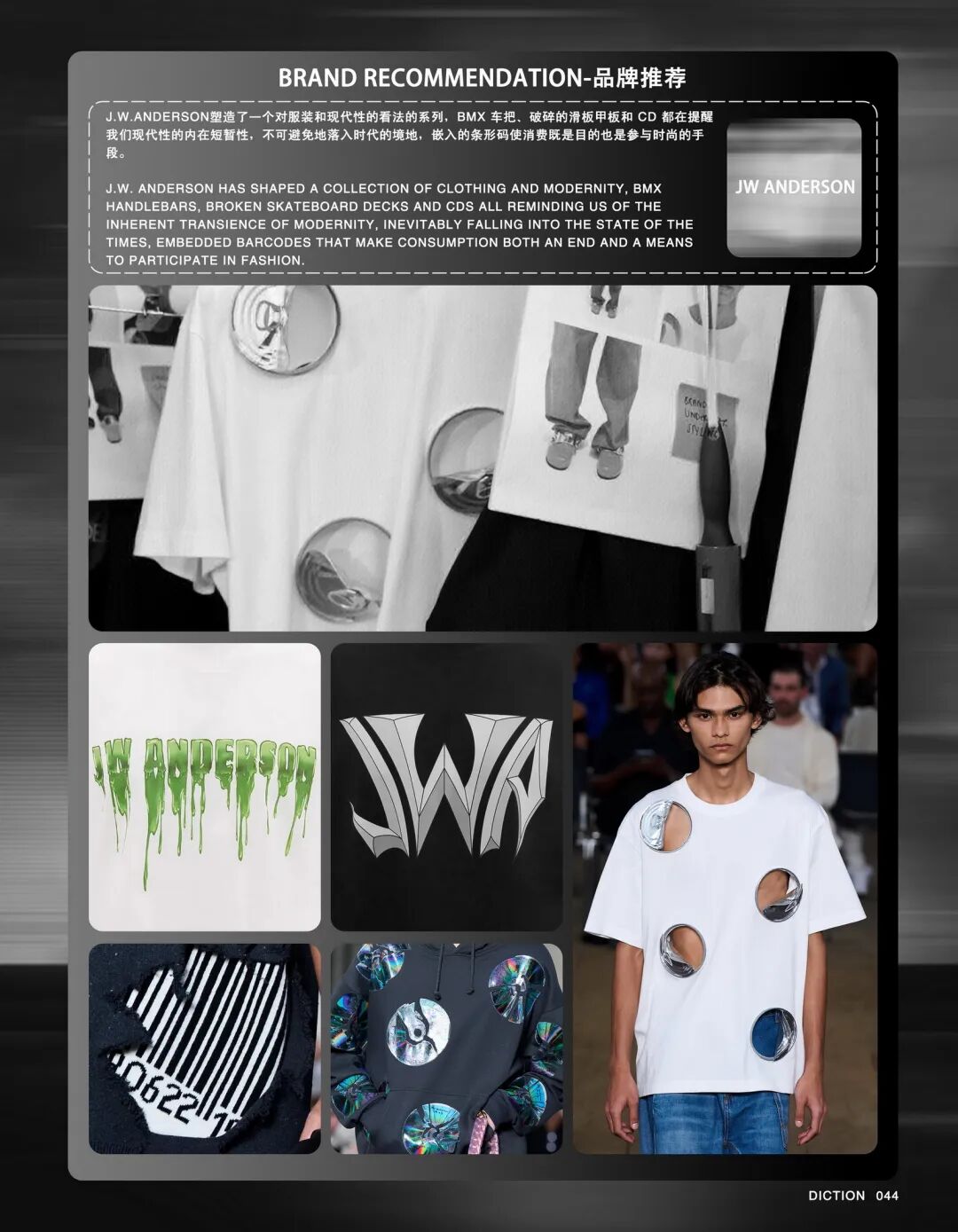 本书籍紧跟流行文化元素,提取了6个主要的创作方向,包括「开放世界、集结指令、数字空间、暗夜狂欢、自然联系、弥散冰川」等主题,详细解读男装2023/24秋冬图案趋势。