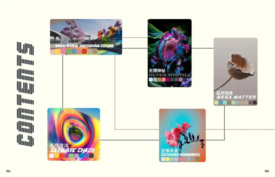 《2023/24秋冬女装毛衫趋势》全书分为五个部分,包括「关键色彩」和「无尽混沌」「无限神秘」「至臻浪漫」「超然物质」四大主题篇章,全面解读2023/24秋冬女装毛衫趋势,帮助设计师预判未来设计走向。