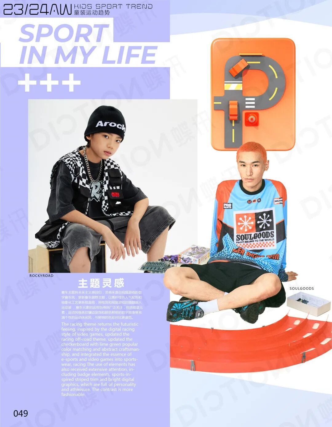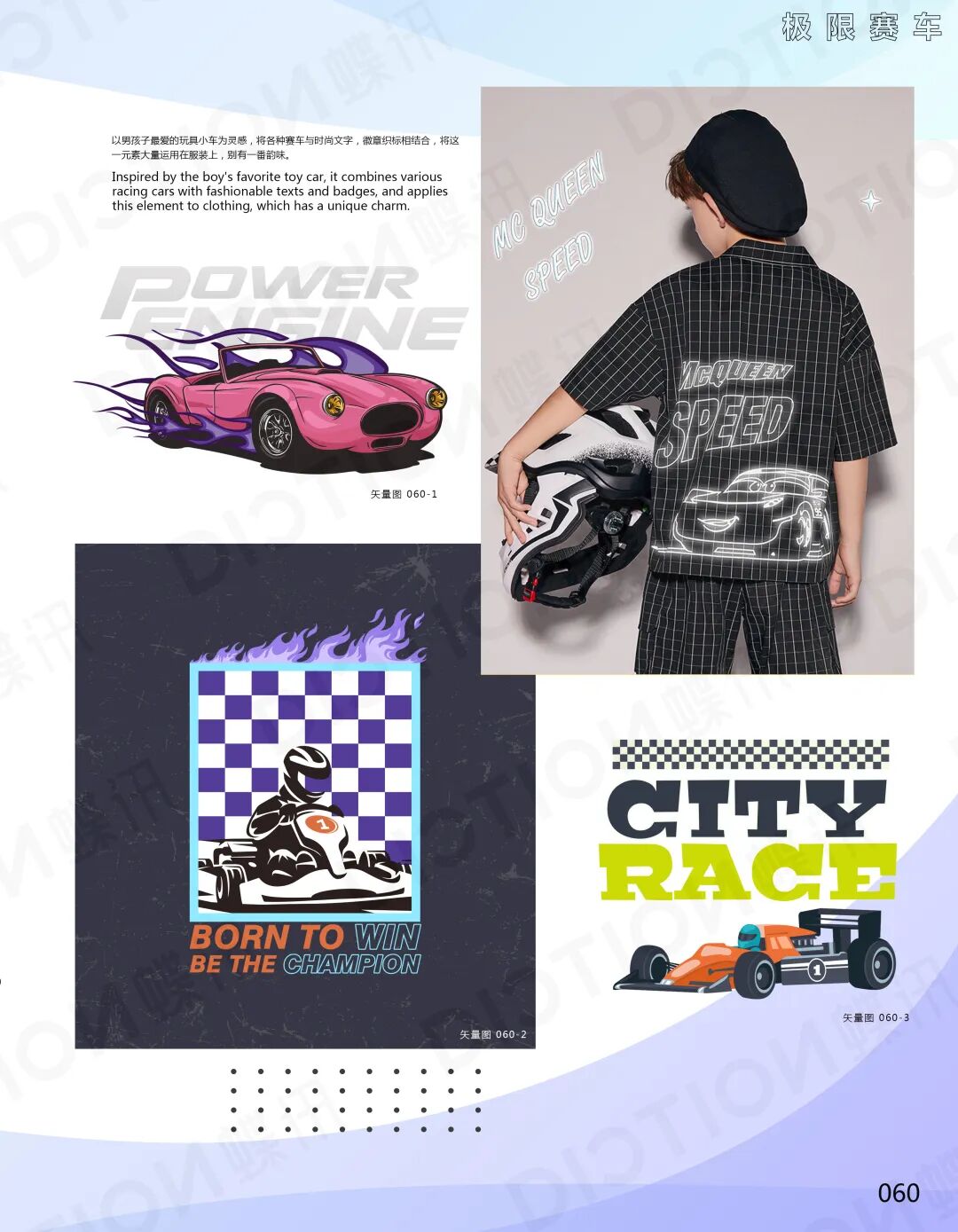 赛车主题将以未来主义感回归,灵感来源自视频游戏的数字赛车风,更新赛车越野主题,以青柠绿色人气配色和抽象化工艺更新棋盘格,将电竞和视频游戏的精髓融入运动装 ,赛车元素的运用也得到广泛关注,包括徽章元素,运动风格条纹镶边装饰和颜色鲜明的数字图像等充满个性的运动休闲风,与鲜明的色彩对比更潮范。