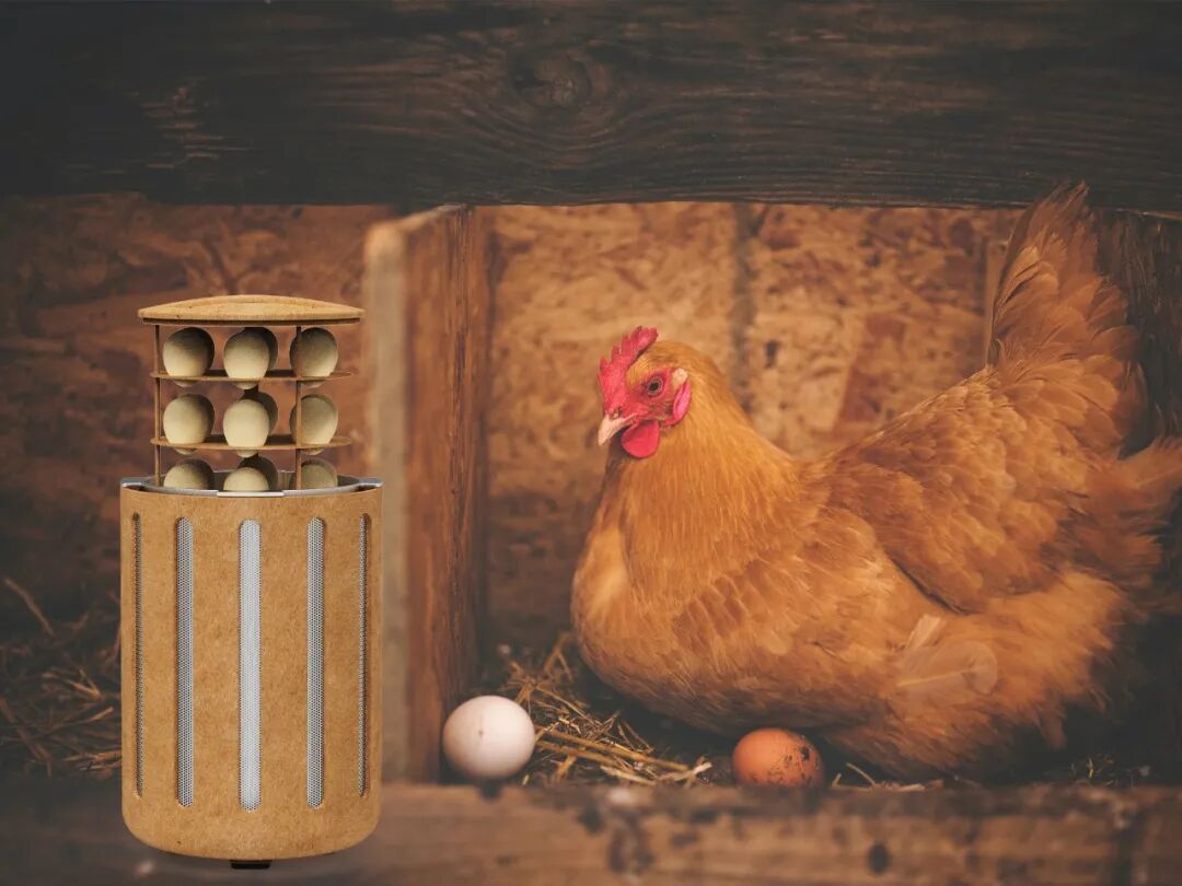 在东南亚的落后地区,养鸡生蛋是某些农民赖以维生的方式,但在高温高湿度的季节里,鸡蛋里的细菌繁殖速度极快。农民买不起冰箱,鸡蛋很快就会变质腐坏,不但浪费食物,也造成经济损失。这种鸡蛋冰箱无需插电,仅利用物理原理“蒸发并吸收热度”,达到一定的降温效果,而且冰箱外层是以农村地区常见的稻壳制成,且合乎环境友善原则。鸡蛋冰箱可以帮助贫困的农民长期保存鸡蛋。