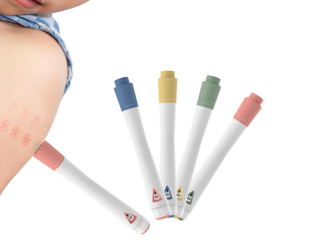 将医疗器材伪装成玩具。这套创新的糖尿病儿童注射针具组,旨在简化糖尿病的治疗与给药,“dipen”不需通过行动应用程式也具备提醒功能,这可协助孩童自主管理病情。家长或照顾者也能检查孩童是否按时注射胰岛素。通过压印,以暖色系表示短效型胰岛素,冷色系表示长效型胰岛素,可以在注射后立即标记穿刺部位。戳章可提醒孩童下一次施打药剂的时间,还能用来判断哪些部位可供下一次注射时下针。