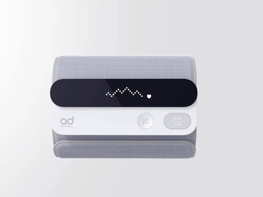 这是一款简约风格的手臂血压计。我们大胆尝试去掉所有不必要的配件,只保留设计中的基本功能。注重数据的精准度,这款监护仪不仅可以让用户在低限状态下测量血压,还可以使用小型大功率气泵和定制的轻量化臂带来减轻设备的整体重量,一体化数显横屏更清爽省电。所有这些都是为了轻便和更好的用户体验。