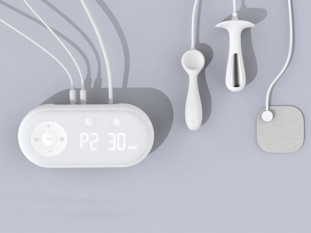 这款盆底肌修复仪旨在让女性在家解决盆底肌损伤问题。我们利用低频电流开发了一种特殊的电极探头,可直接检测盆底肌力,并能精准采集肌电信号。整体设计采用正面一体式液晶面板,整体看起来更加完整。同时,斜面设计让用户在使用过程中更容易阅读。机身底部采用双重防滑设计,方便用户使用。