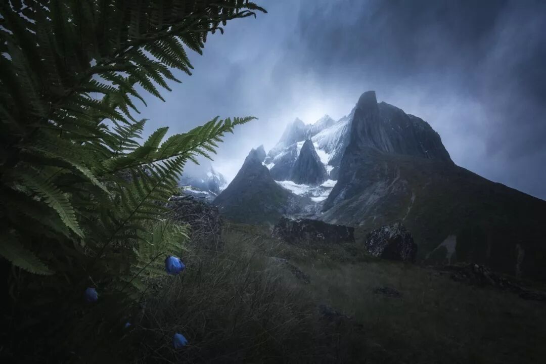 下面一副山川大河的照片,主色调是暗青色,打下了神秘魔幻的色彩基调。