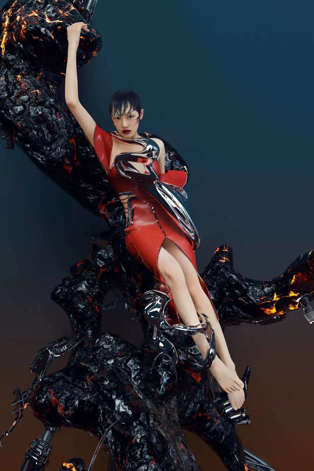 当然,也会有一些现实原因,大多数时候,我脑子里会出现无数 “爆炸”的想法,就面对两个问题:一是控制成本,纯靠置景去完成一组“上天入地”的创作,预算会跟我的想法一样“爆炸”;二是很多东西拍是拍不出来的,CG是将意识转化为可视物的捷径。