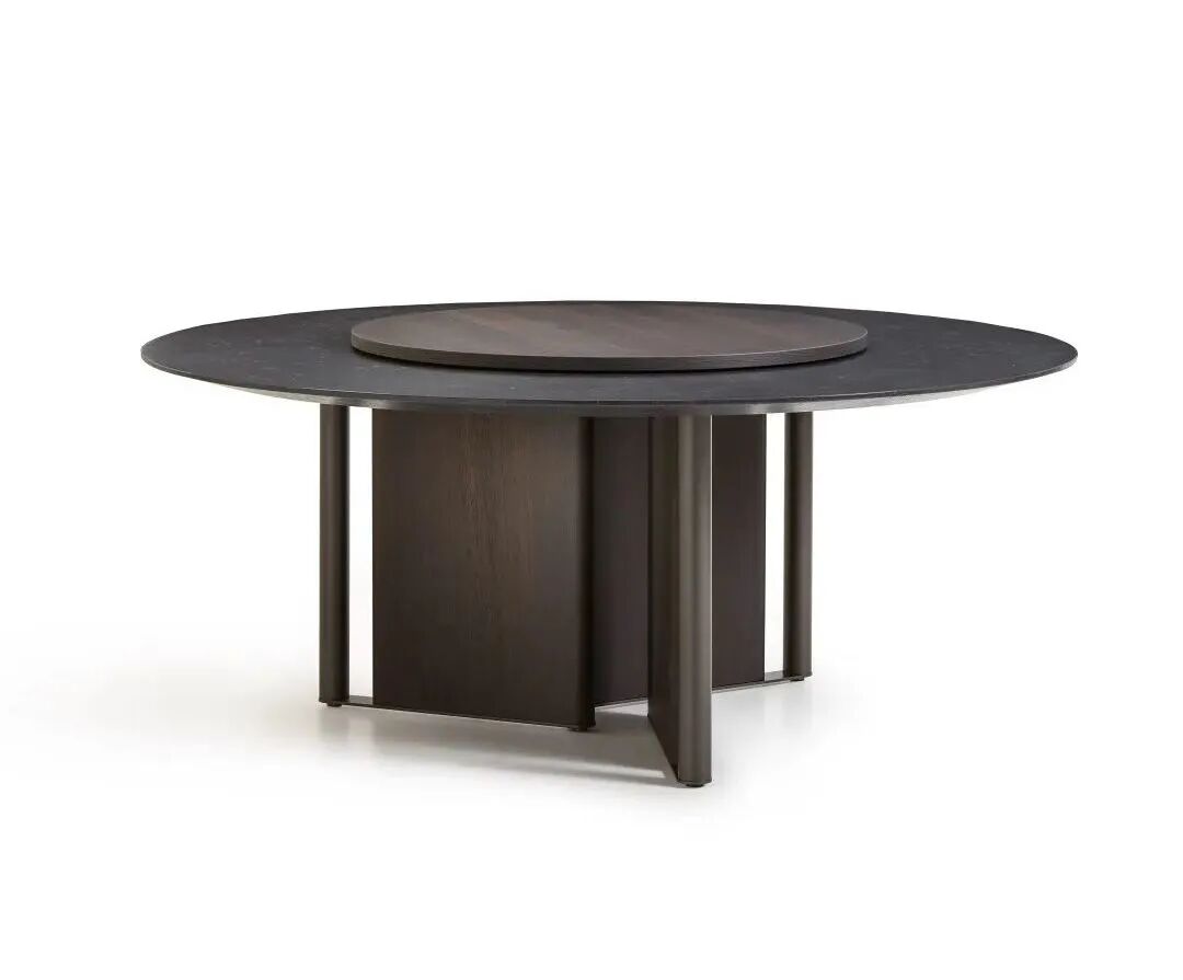 桌腿错落的摆放方式,桌腿之间形成的空间感,使得该系列长方形和圆形两款餐桌,在任意角度观察都有相对均衡的视觉传达。