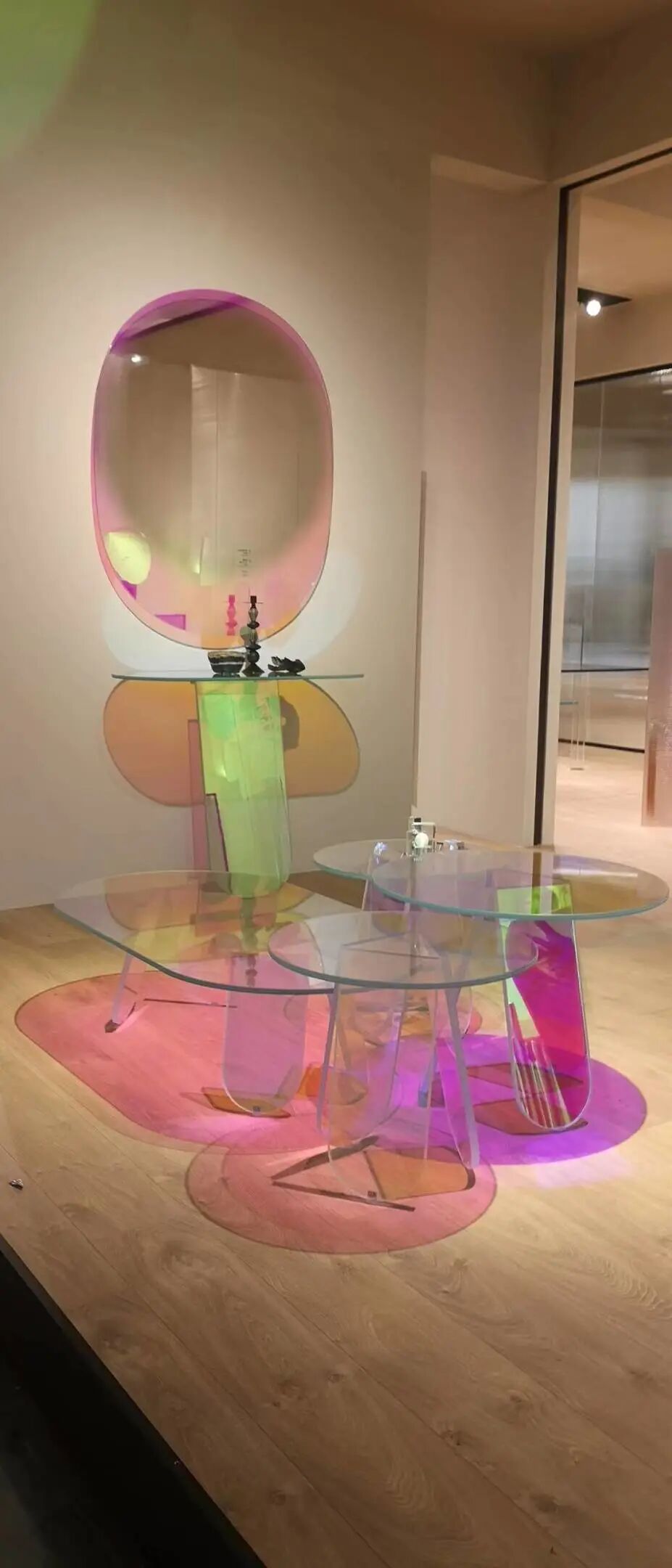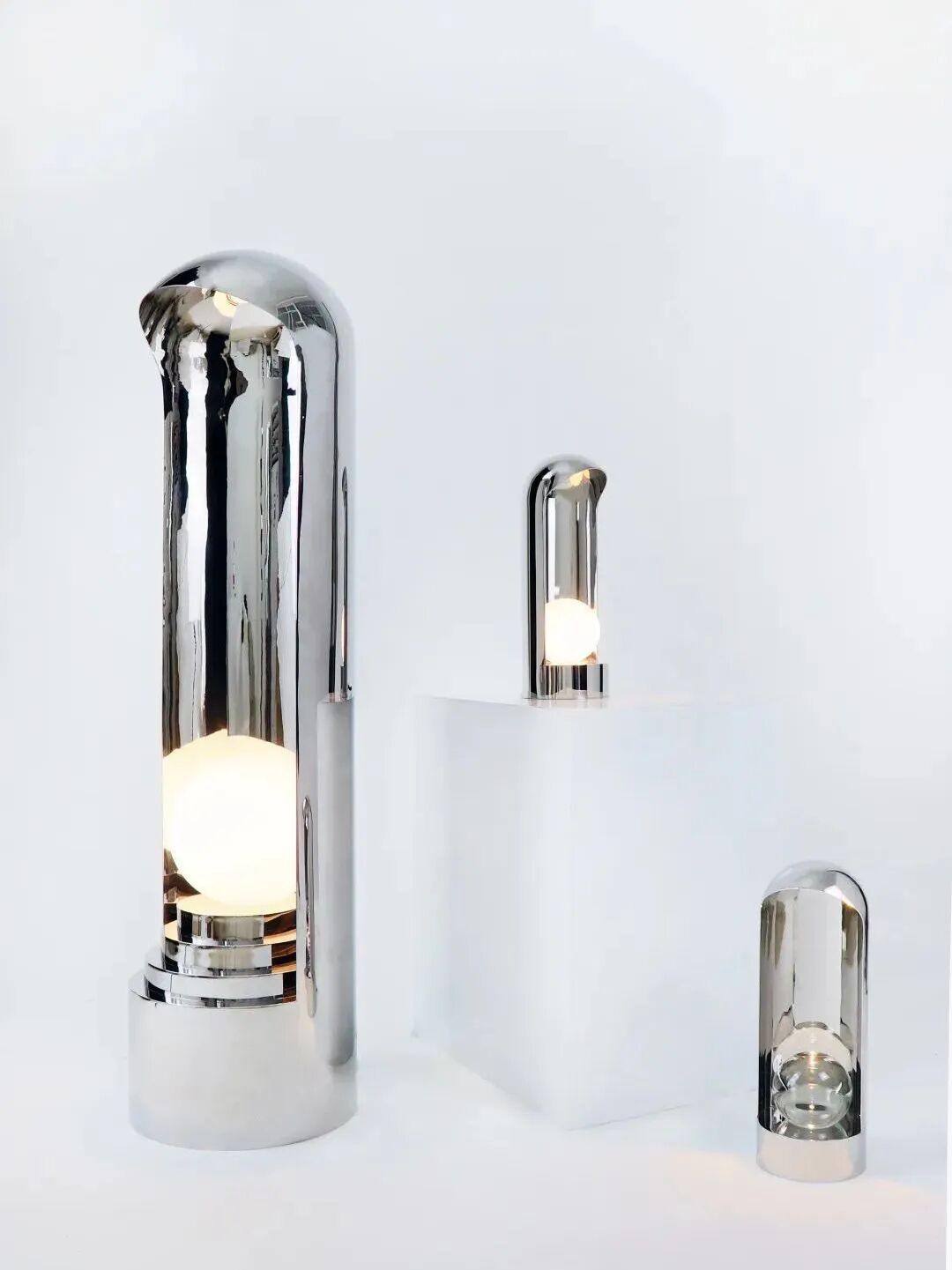 刘潇这次在米兰国际家具展卫星展,展出了THESHAW成立5年内的经典作品。不锈钢与光学玻璃冲突又融合的独特美感,表达着设计师所坚持的未来主义内核。