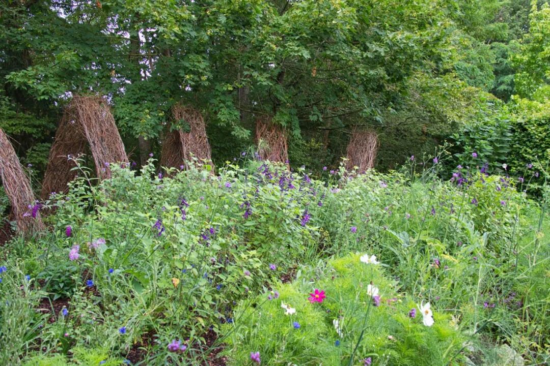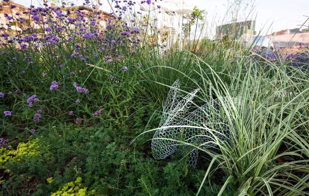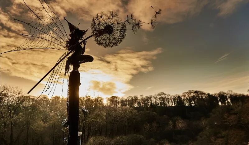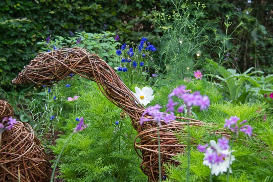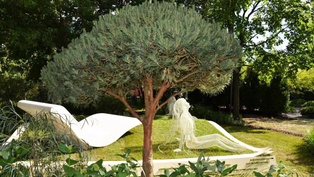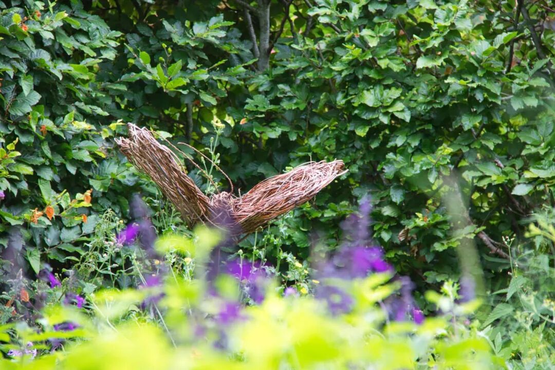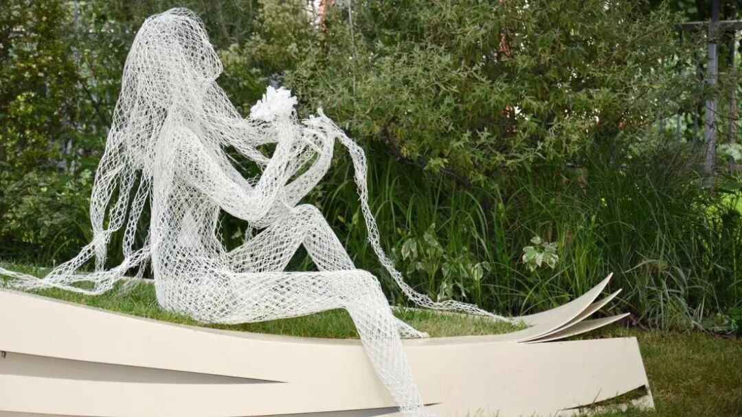 这是一个展示花园,一本书装置,三个角有造型各异的编织雕塑组成,可供参观,休闲娱乐的空间设计。