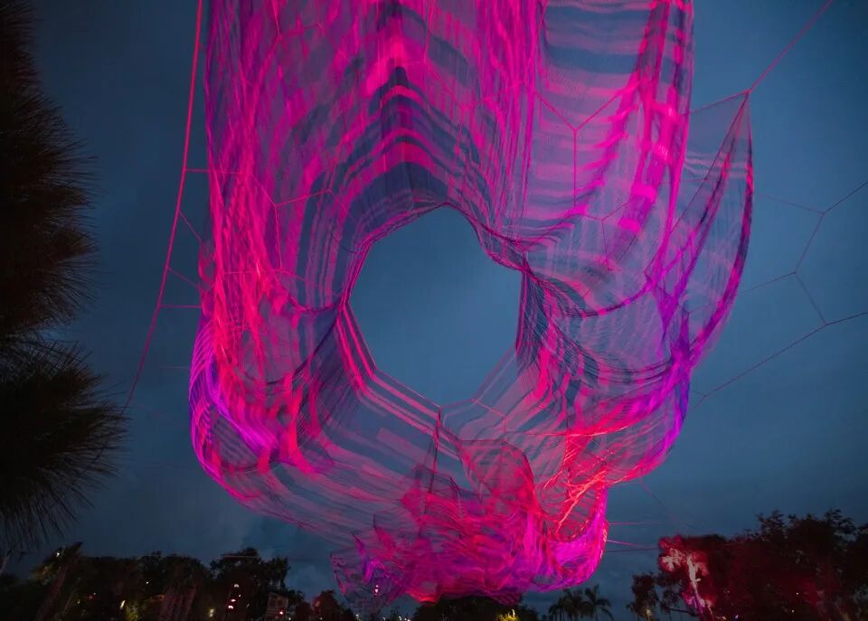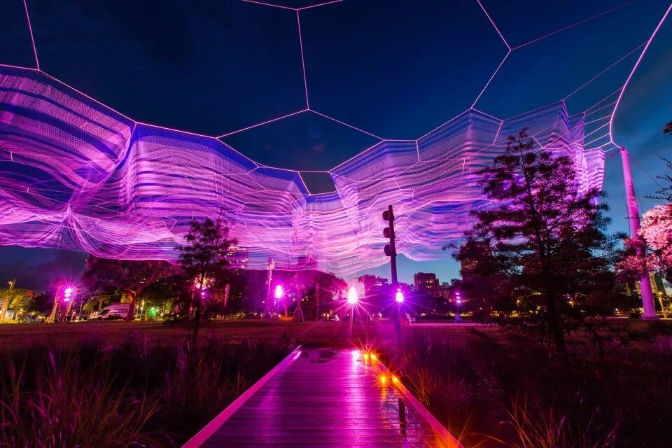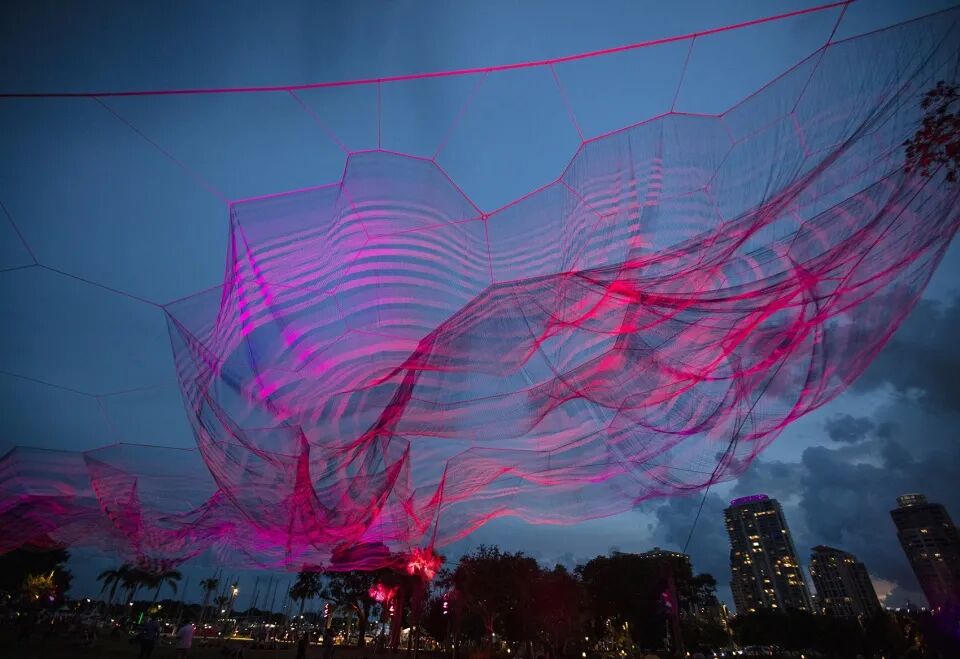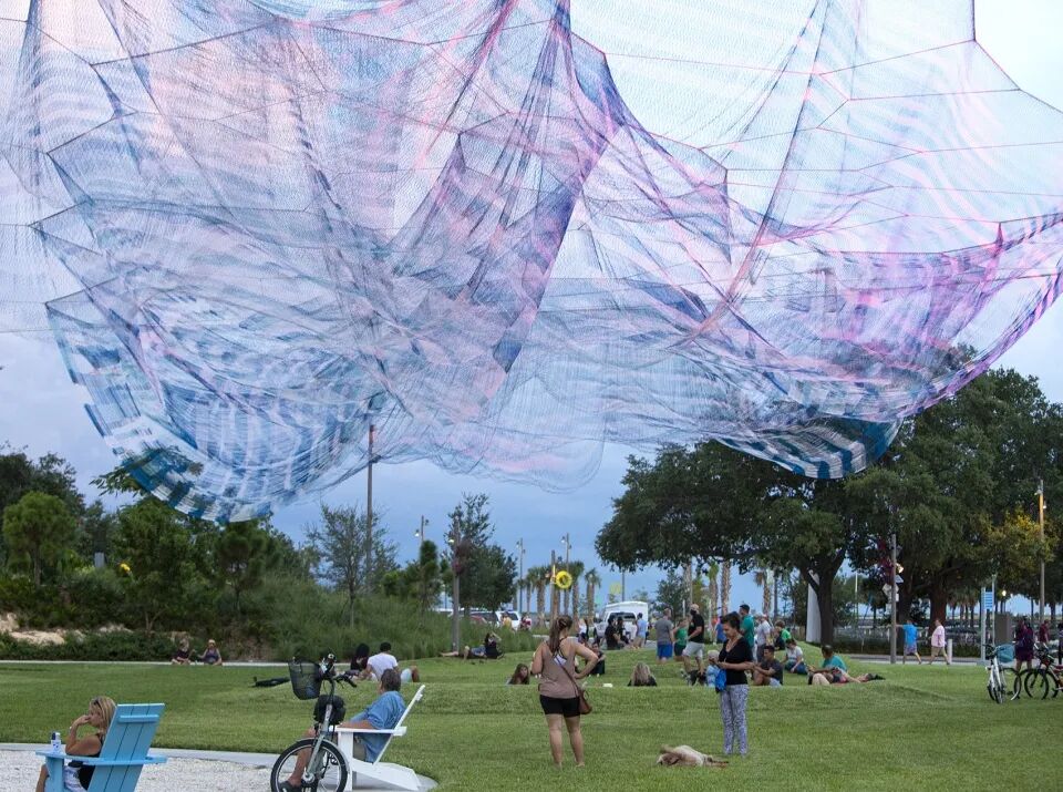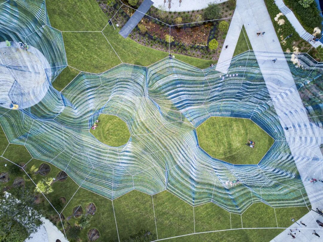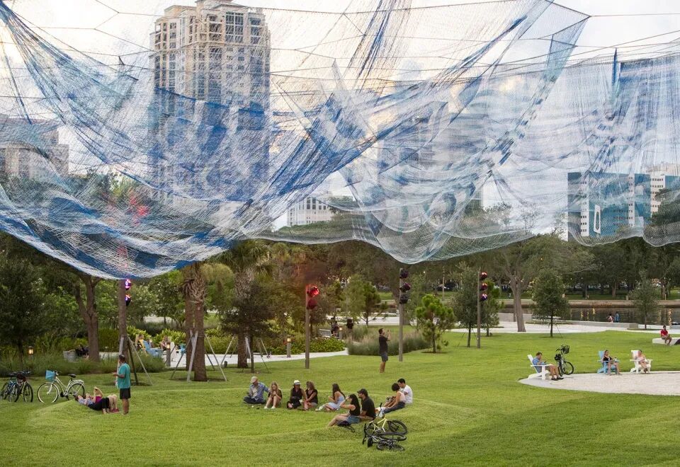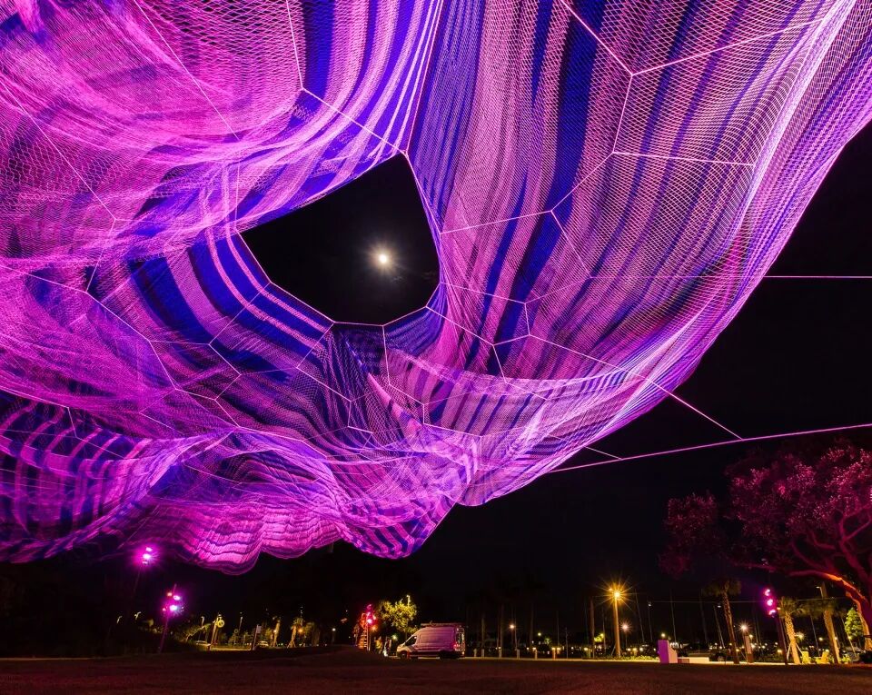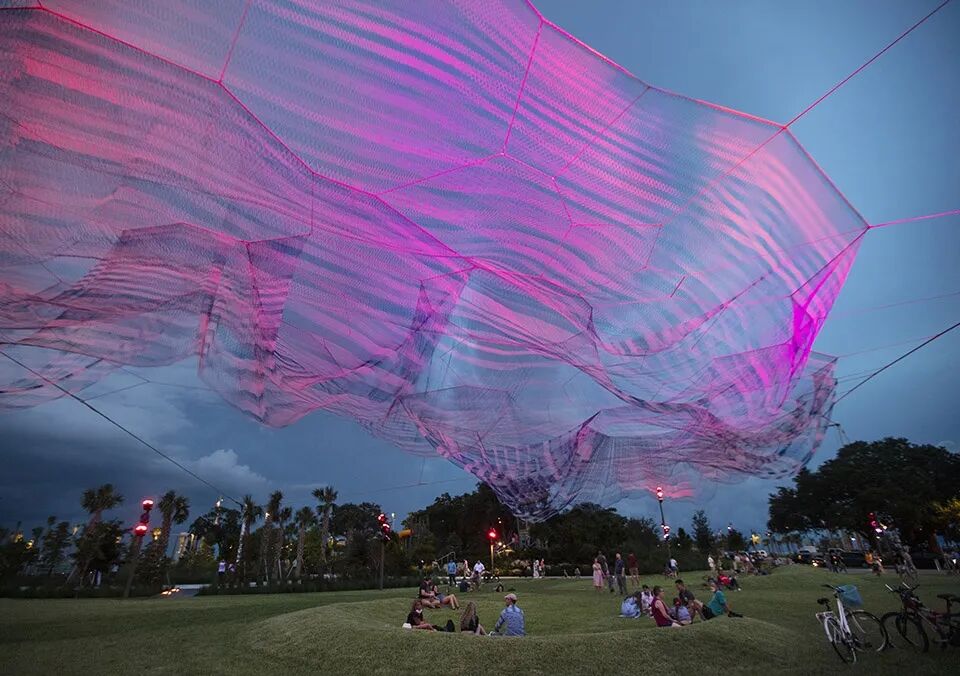 Echelman的艺术装置为游人提供了一片绿洲,在这里,人们可以享有片刻的宁静,感受与自然宇宙的联系。“天空就是我艺术品的画布” Echelman说道,“由于这件艺术品在室外,被安置在新鲜的空气中,在疫情期间,它为人们提供了一个真实且安全的共享之地。”