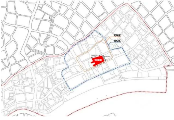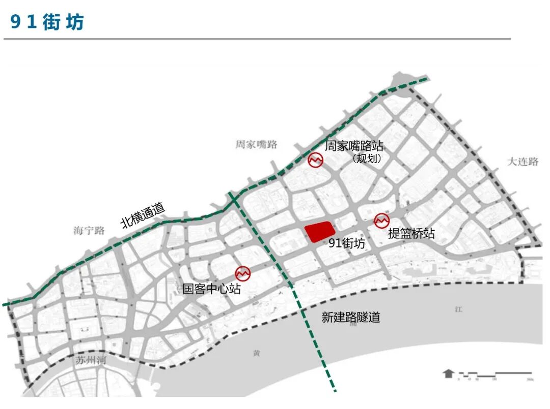 上海虹口区北外滩街道HK321-01、HK321-02(部分地下)(北外滩91街坊)项目范围为北外滩91#街坊内的hk321-01地块整体和hk321-02地块的部分地下空间范围的建筑概念方案设计。设计范围详见下图蓝色虚线范围。
