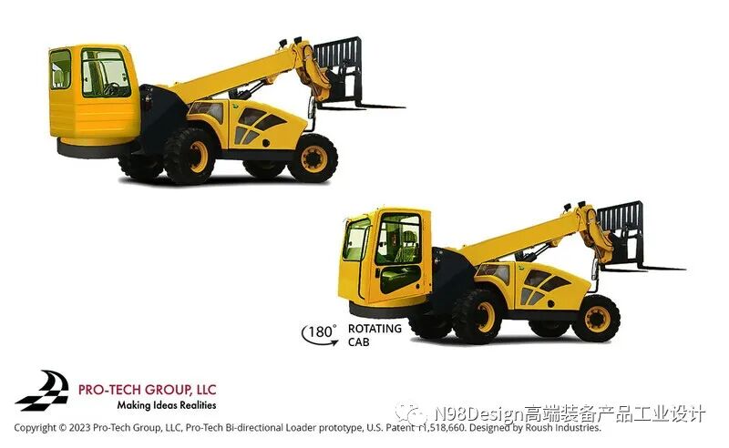 “ 美国企业Pro-Tech近日宣布获得美国专利商标局授予的专利——180度旋转驾驶室VII级可变臂距型装载机(“双向装载机”)。”