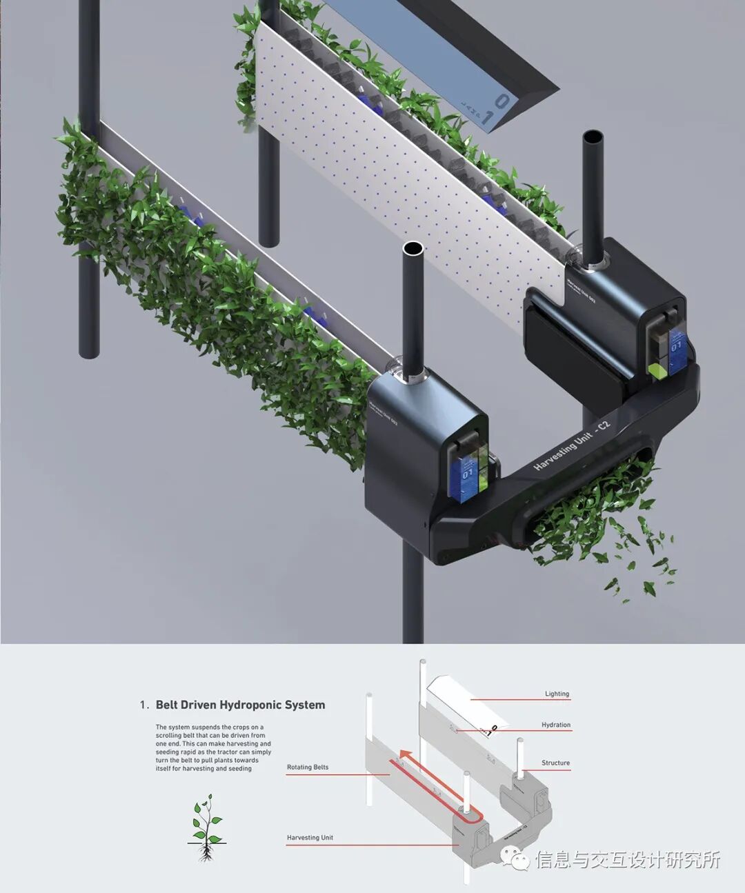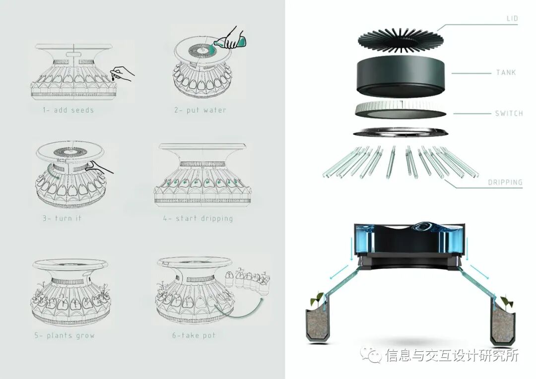这个项目的主题是都市农业。设计师为居住在公寓和阴影区域的人们设计一款室内植物护理产品,从现有的植物生长系统、自然、厨房机器中寻找灵感。