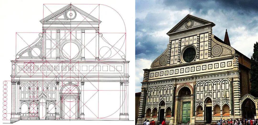 因此,我们有理由说,这种几何数学游戏只能存在于纸张这一媒介中,实际的建筑不能感知全部。如果你要理解文艺复兴时期建筑大师对几何艺术的造诣,最直接的就是看他们的图纸,而不是看他们的建筑。