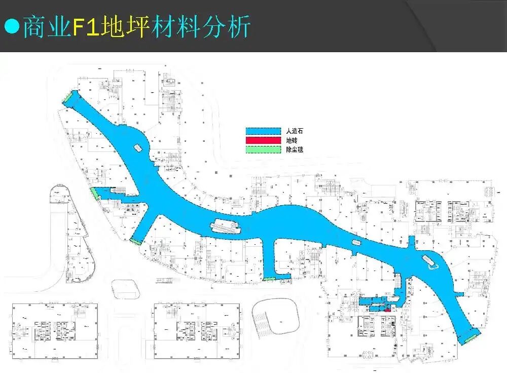d、主要用材分析:地坪、天花、立面所用主要装饰材料;