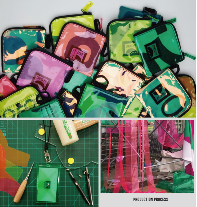 该品牌将废弃的雨伞、横幅、海报等废弃材料重新制成产品,包括斜挎包、钱包、衣物等等。