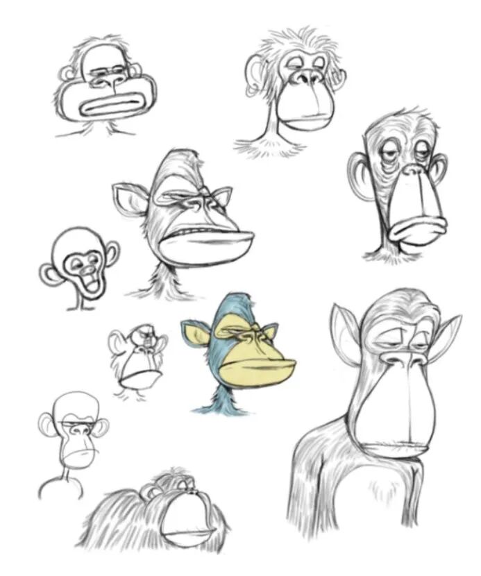无聊猿的创始人看到了CryptoPunks的成功,受到启发,想尝试做一款头像类 NFT,再通过游戏化的方式将头像和加密社群结合在一起,创造一种新玩法。他们很快就摸到了门路,并在去年2月敲出了智能合约的第一串代码。两个月后,10000 张不同风格的猿猴头像NFT诞生,正式启动预售,每一只猿猴都有自己的专属编号。