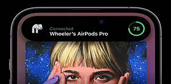 以解锁iPhone为例,用户将看到灵动岛上显示解锁图标。当连接AirPods时,也能够在灵动岛上看到连接状态。下面列举了灵动岛的功能。