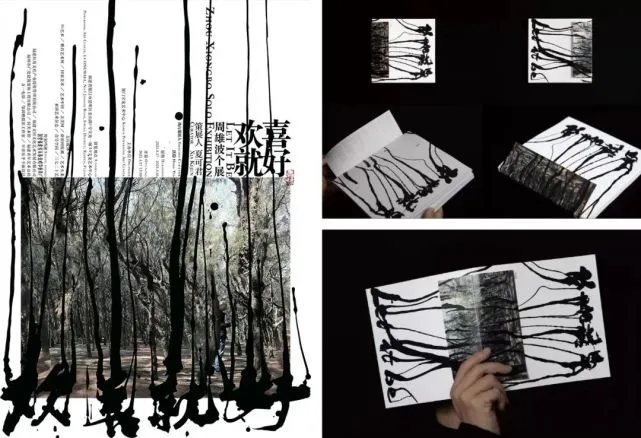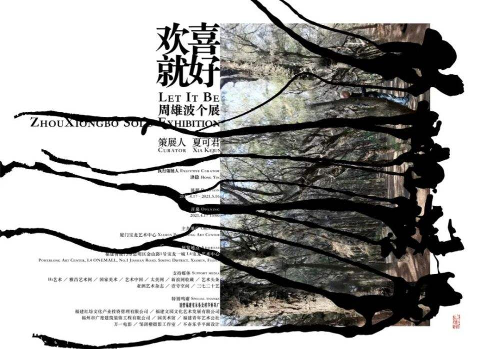 “欢喜就好”是艺术家周雄波的个人作品展览。其作品《欢喜就好》表达了一种“顺其自然”的艺术追求和创作心态。乍看上去,作品上挥洒的笔墨看似随意而又杂乱;仔细体会,却能够发现墨迹的走向实际上与背景树林的树干枝杈相互呼应。无论是向上延伸还是一左一右相互连接,从这些墨迹中都能让人感受到其中的一种张力,一种奋发向上,不受拘束的积极力量,表达了艺术家追求与自然和谐相处,与自然共同对话的心态。