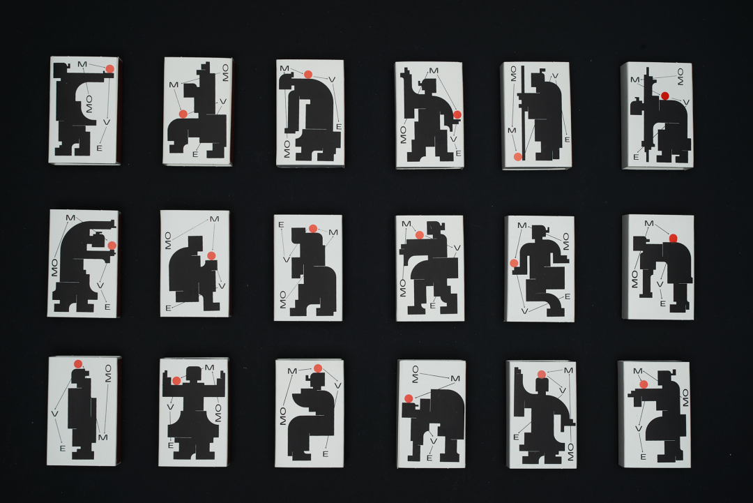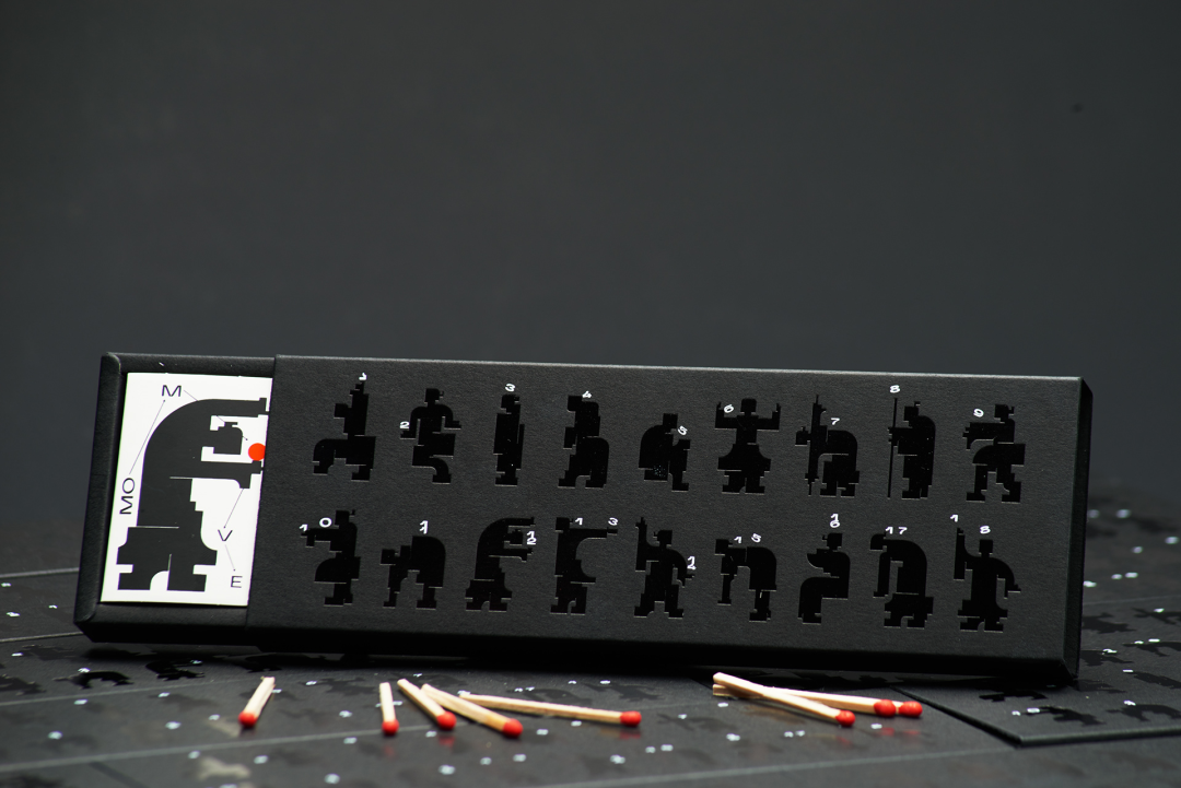 《MO MOVE 火柴盒》以酒店房间提供给客人的火柴盒作为载体,通过包装设计传播自己的理念。MO MOVE也就是MORE MOVE,其目的在于呼吁人们多到户外活动锻炼。因作者选取的酒店位于道家文化盛行的浙江省某县城,于是作品借鉴了道家图谱“导引图"中的人物动作。字母间的连线环绕在人物身旁,构成星座的样式,可以代表着人们走出室内,在自然环境中锻炼身体,也象征着人与自然的和谐关系。其中一个字母O用实心红点处理,又与火柴本身的结构形成对应。整体作品设计有趣而又充满巧思,融合了文化传统却又不失现代的设计感。