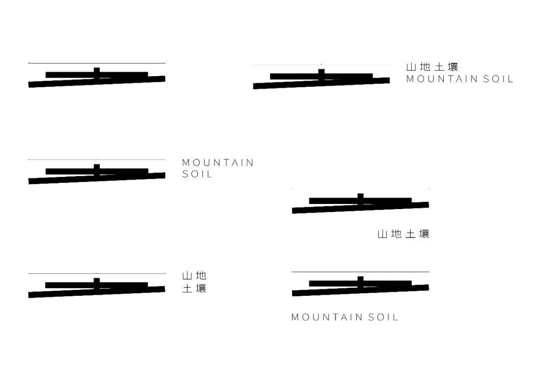 “山地土壤(Mountain Soil)”是杭州的一家空间设计公司,其品牌名中的“地”“土”“壤”都与“土”字息息相关。设计师巧妙地提取了其中共同的“土”元素,作为整个标志的视觉重心。而其下一横微微倾斜,在打破平衡的同时也增加了些许公司在空间设计方面的感性思考——空间设计不能太过死板,要有所变化,使得各部分互相联系。
