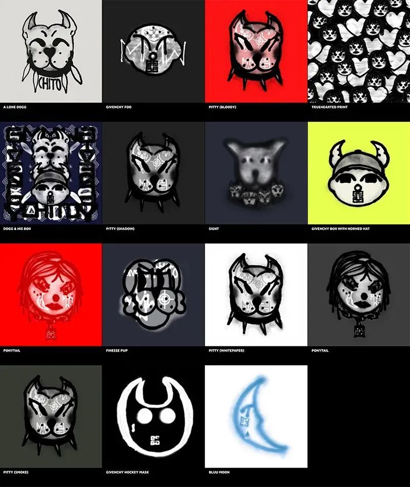GIVENCHY还从实物系列上进行了延伸,打造了一套NFT。早些时候,马修·威廉姆斯邀请艺术家奇托合作。11月底,该品牌根据奇多设计的图案打造了15款NFT。