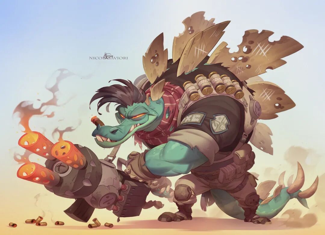 包括拳头游戏、暴雪、Counter Play等等诸多知名公司企业皆是其服务对象,作为暴雪长期合作设计师,其参与了《炉石传说》许多KV的绘制,魔幻的色彩让人物饱满,粗狂的线条充满野性的意味,好一个野兽派画手!