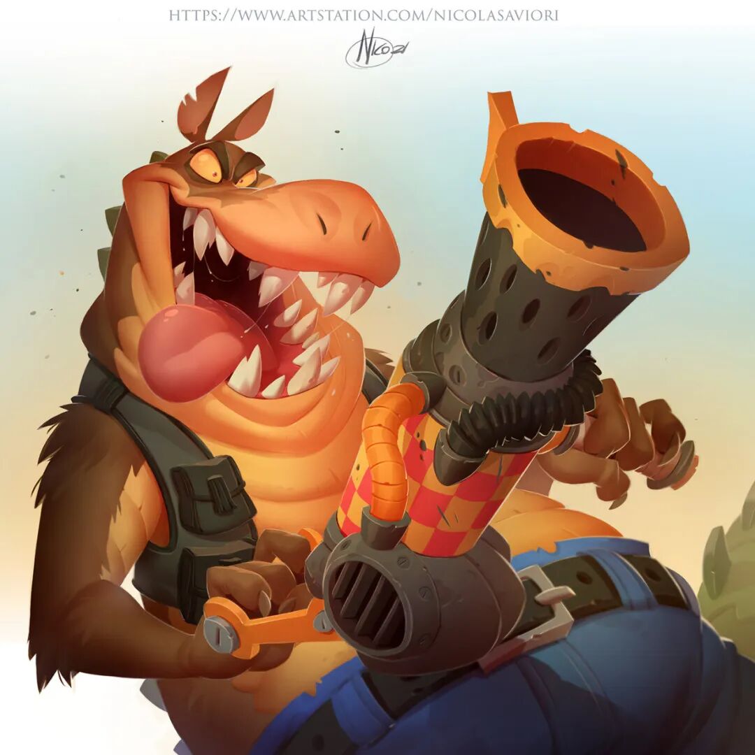 目前,Nicola Saviori会不定期在Twitch上直播绘画,他也会发起一些主题挑战赛,上期以恐龙为创作主题的Love Death & Dinoz挑战赛,意在让大家根据恐龙这一核心因素进行独具个人风格的创作。