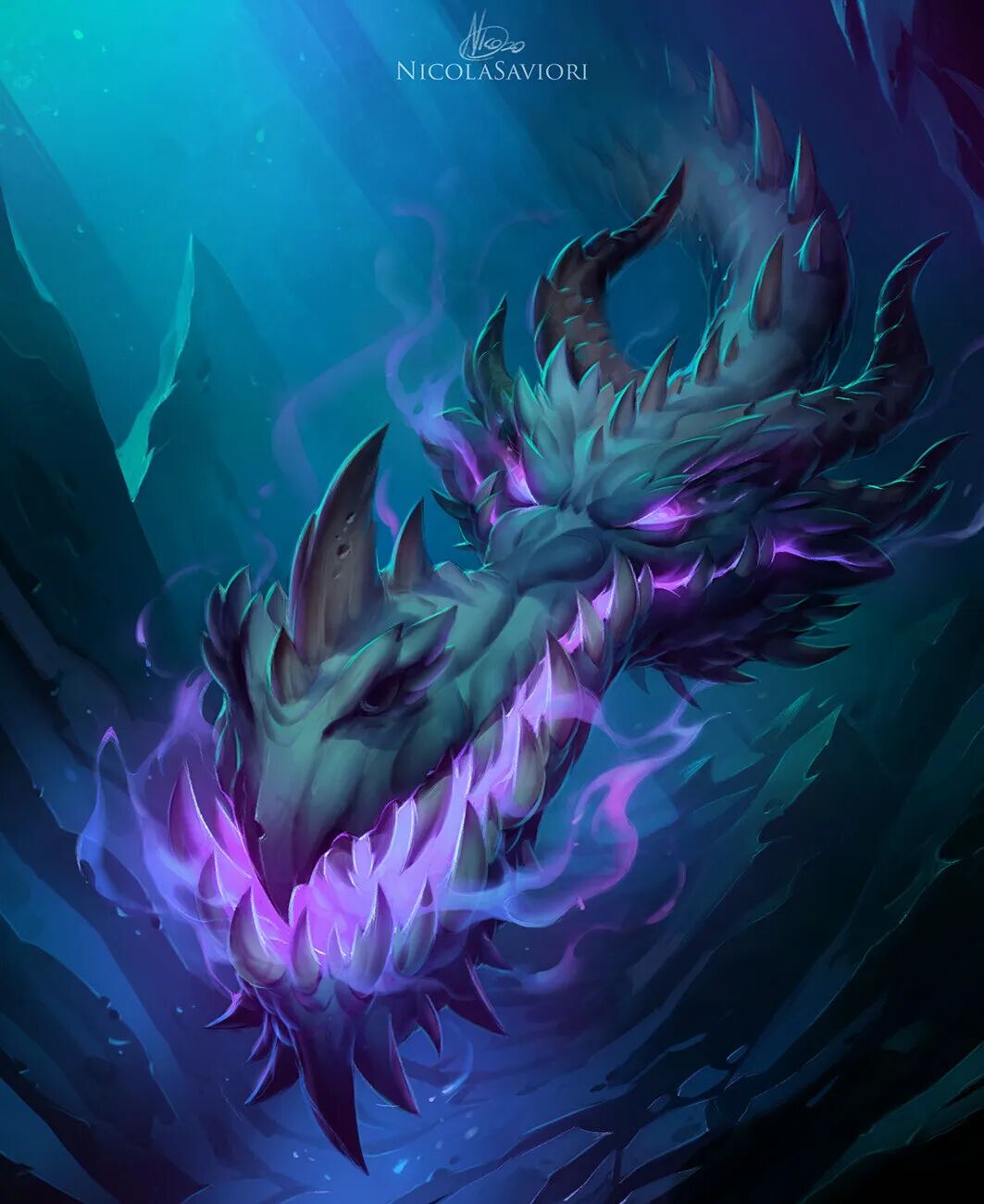 用色鲜亮明快,加上特效光源的点缀,强烈的明暗对比,让画面极具冲击力,将想象力和扎实的绘画功底充分融合。