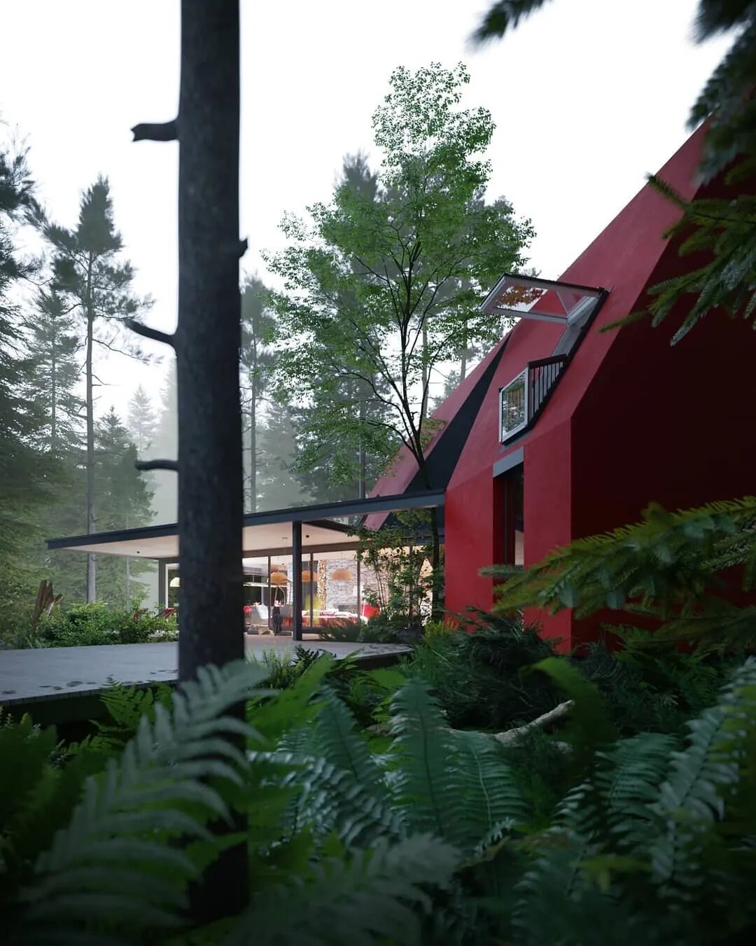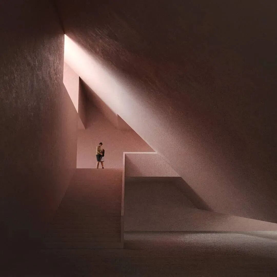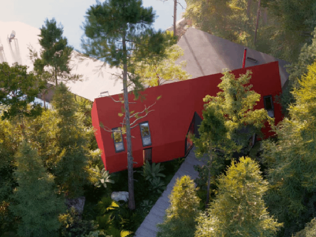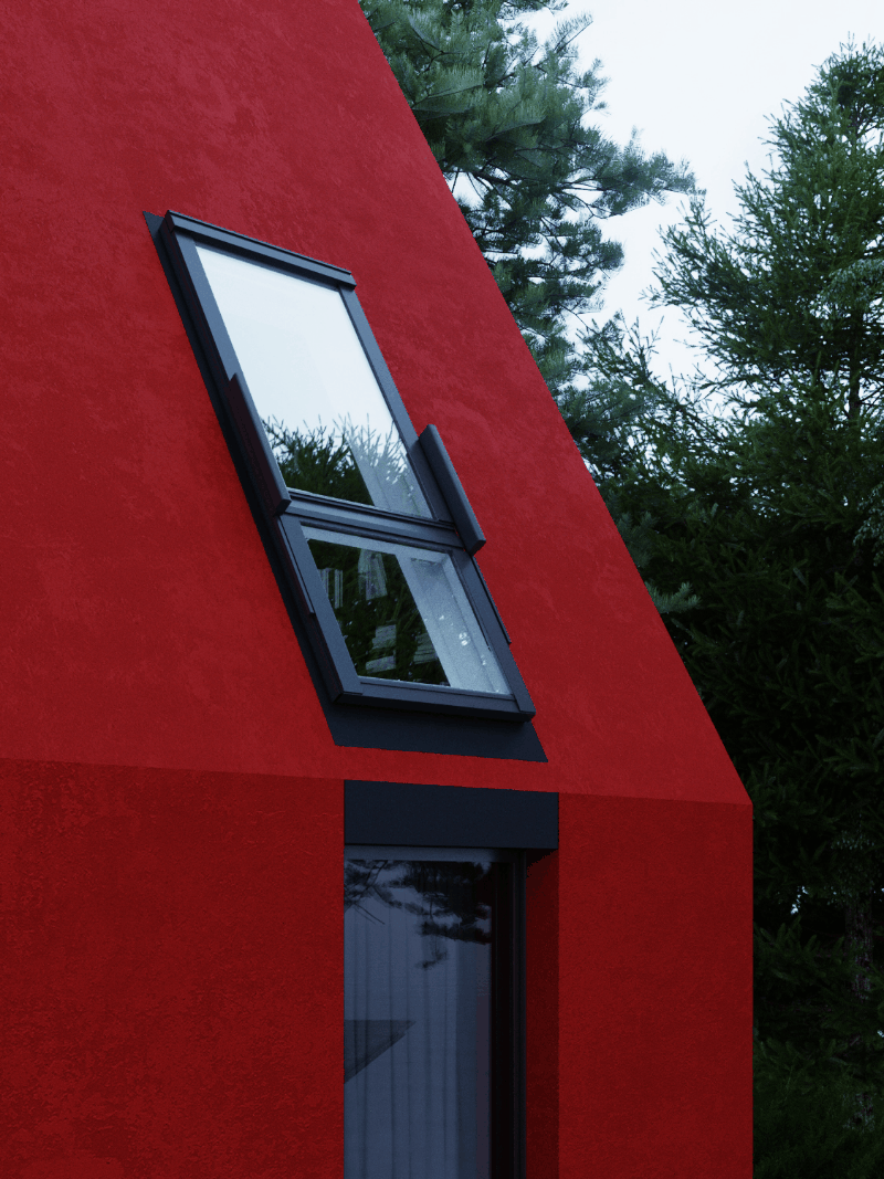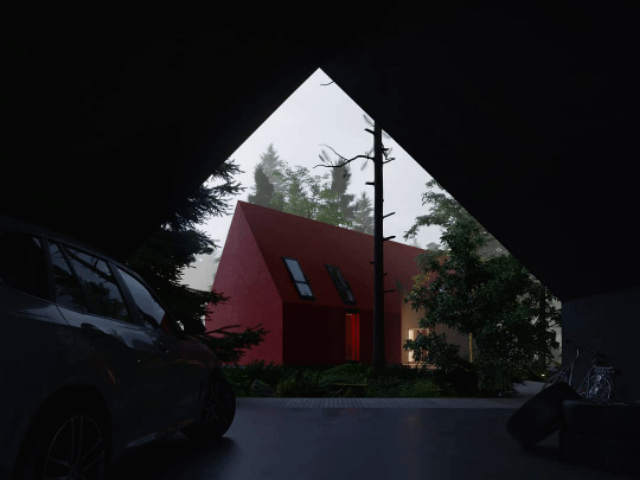 坡度的房顶具有内部排水系统,各种形状之间的穿插形成独特的结构,大小不同,形状各异的窗户带来不同的光线。五彩缤纷的世界让人忘记这仅仅是3D渲染的视觉效果。