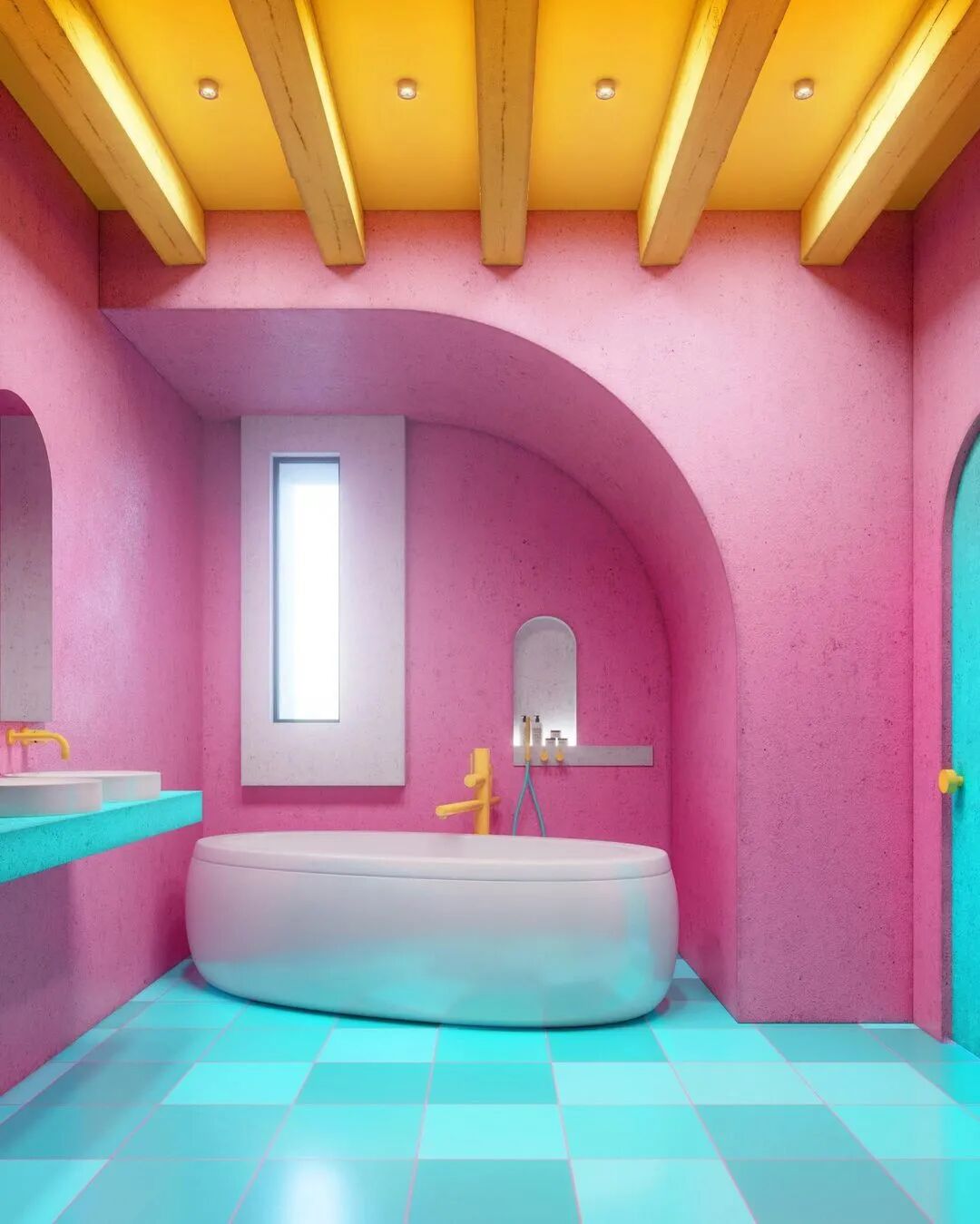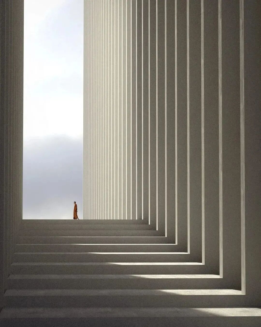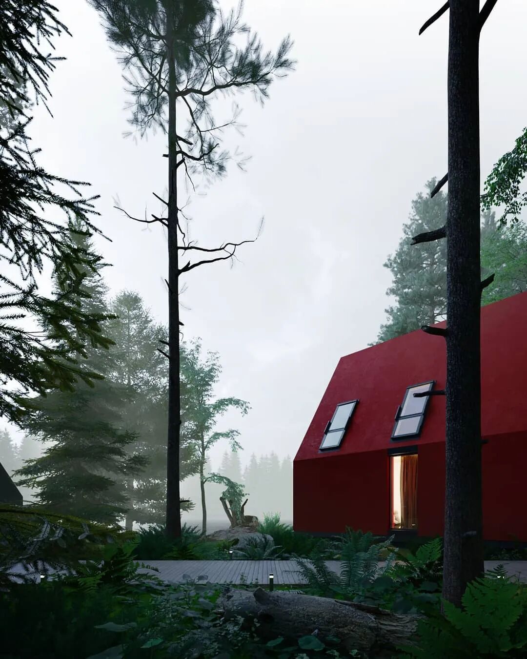 坡度的房顶具有内部排水系统,各种形状之间的穿插形成独特的结构,大小不同,形状各异的窗户带来不同的光线。五彩缤纷的世界让人忘记这仅仅是3D渲染的视觉效果。