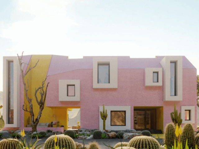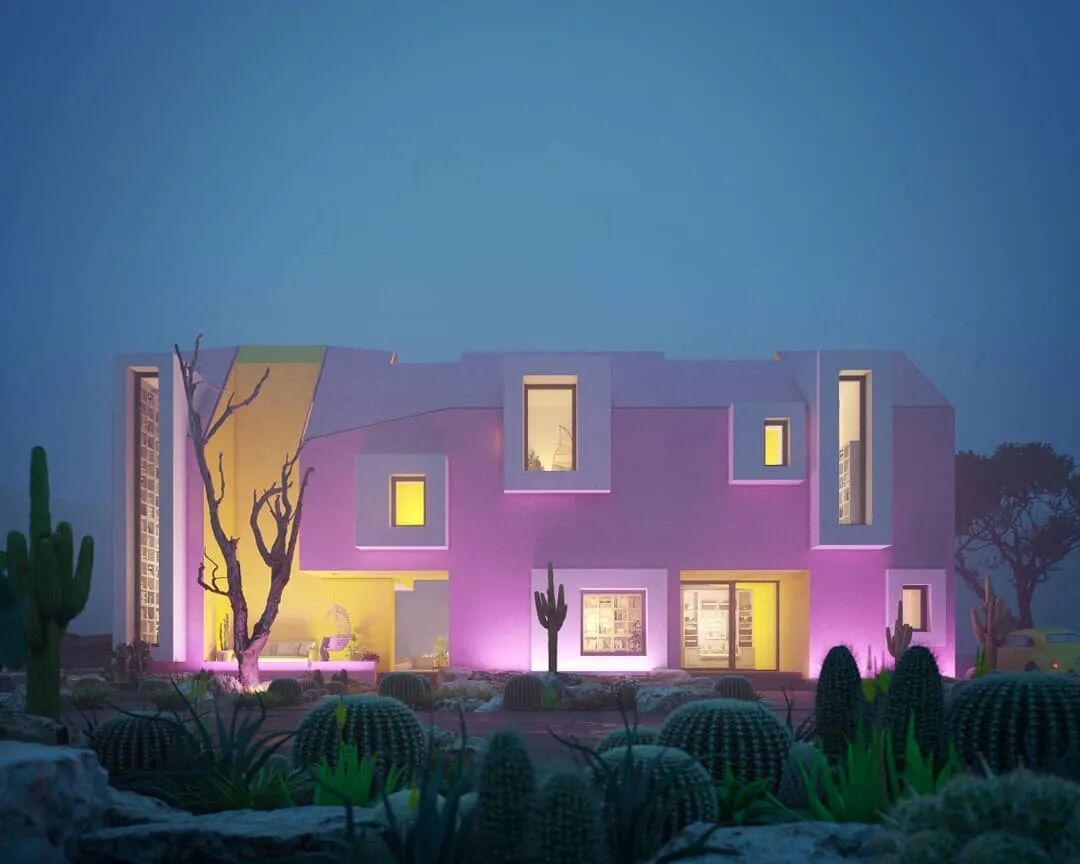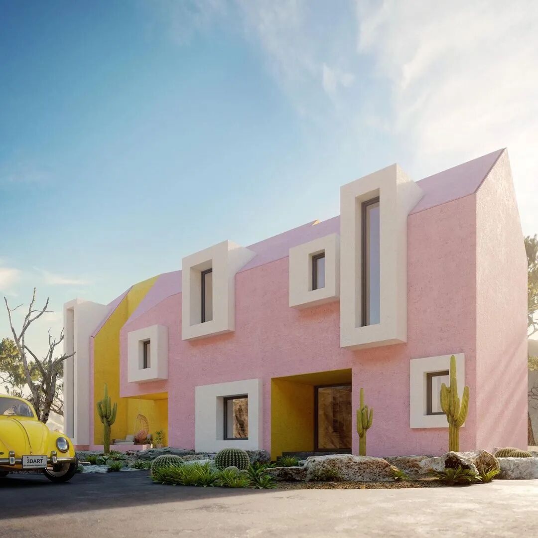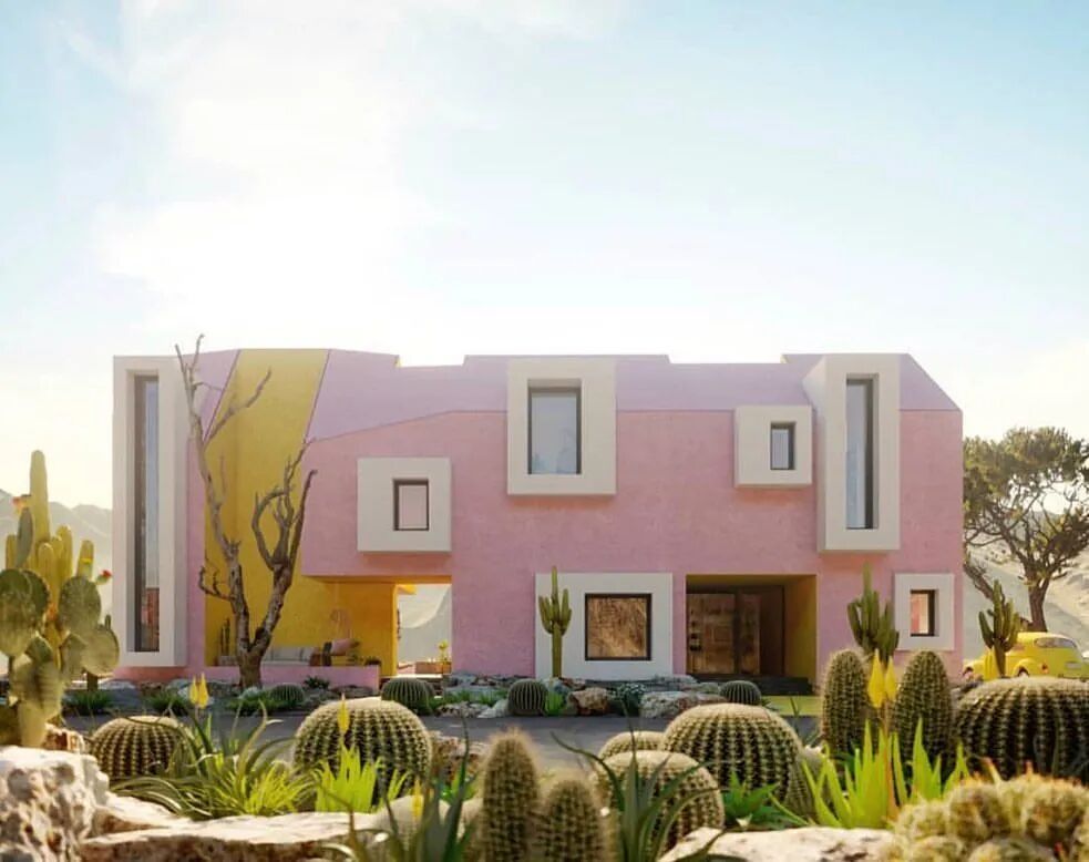 这是一个在墨西哥做的一个概念性家庭住宅项目,简洁而明亮的空间。一个粉色盒子作为基础,在此基础上附上大小不同的窗户作为装饰以及光线来源。大胆而有趣的搭配创造出童话般的居住环境。
