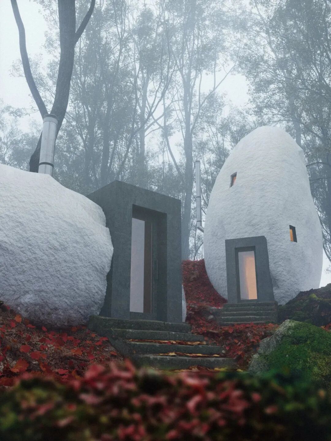 几块巨型白色石头组成的建筑便是来自俄罗斯莫斯科的建筑师Davit Jilavyanen与Mary Jilavyanen的操刀设计。这是他们的最新作品,名为Dolmen Shelter。他们向往着美好的生活,在他们的设计中,可以感受到无限的想象力。