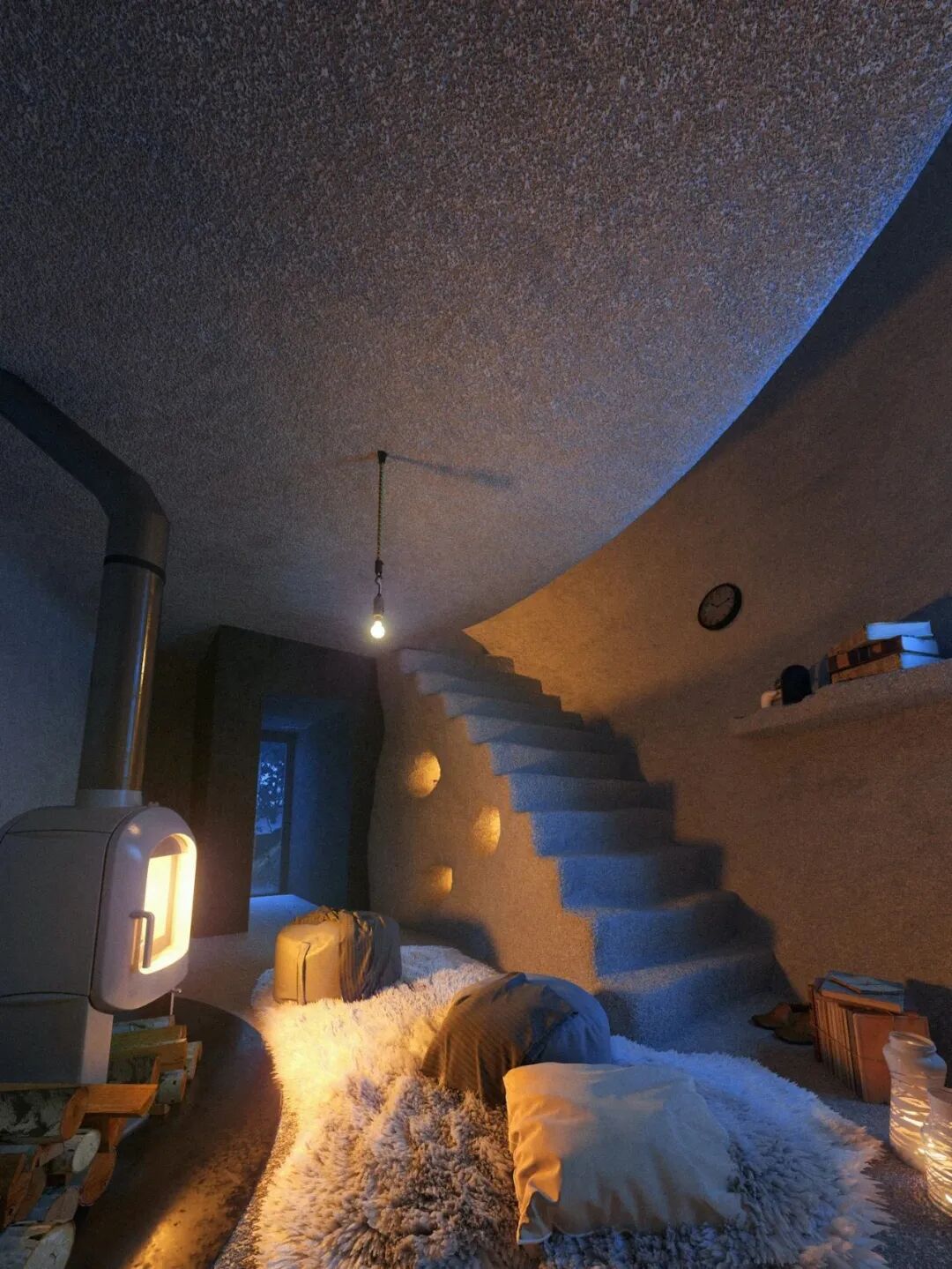 房间内部非常简洁,没有繁琐的家具,但足以让人有不一样的体验,原始的设计像是来到了小矮人的家。